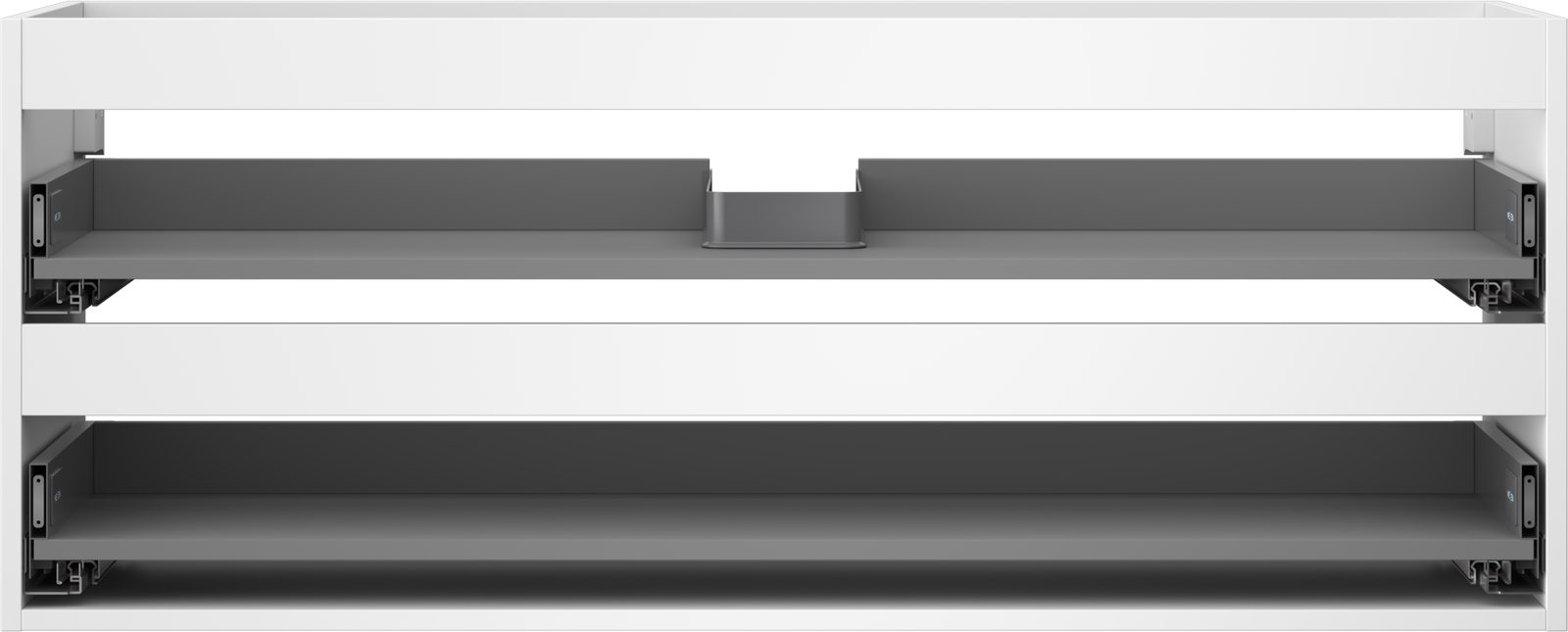 The cutout in the drawer is designed in such a way as to accommodate the siphon, which is essential in sink installations. This allows the furniture to be fully functional without having to give up drawer space for the installation.