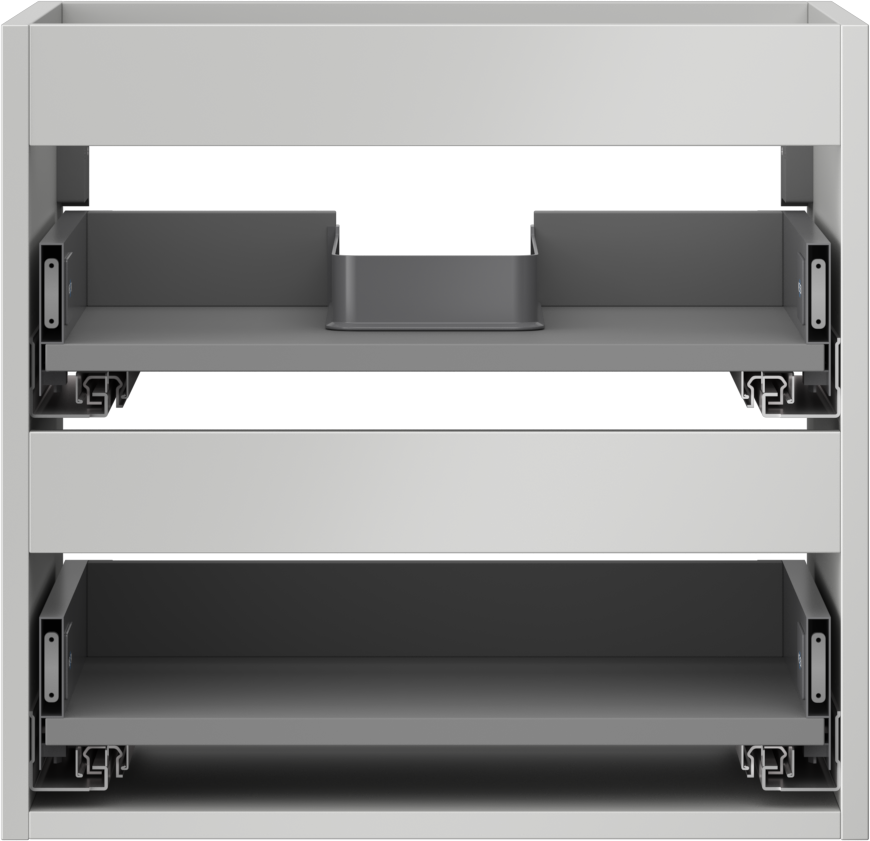 The cutout in the drawer is designed in such a way as to accommodate the siphon, which is essential in sink installations. This allows the furniture to be fully functional without having to give up drawer space for the installation.