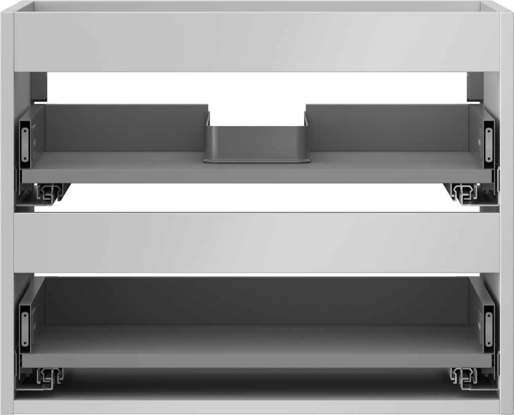 The cutout in the drawer is designed in such a way as to accommodate the siphon, which is essential in sink installations. This allows the furniture to be fully functional without having to give up drawer space for the installation.