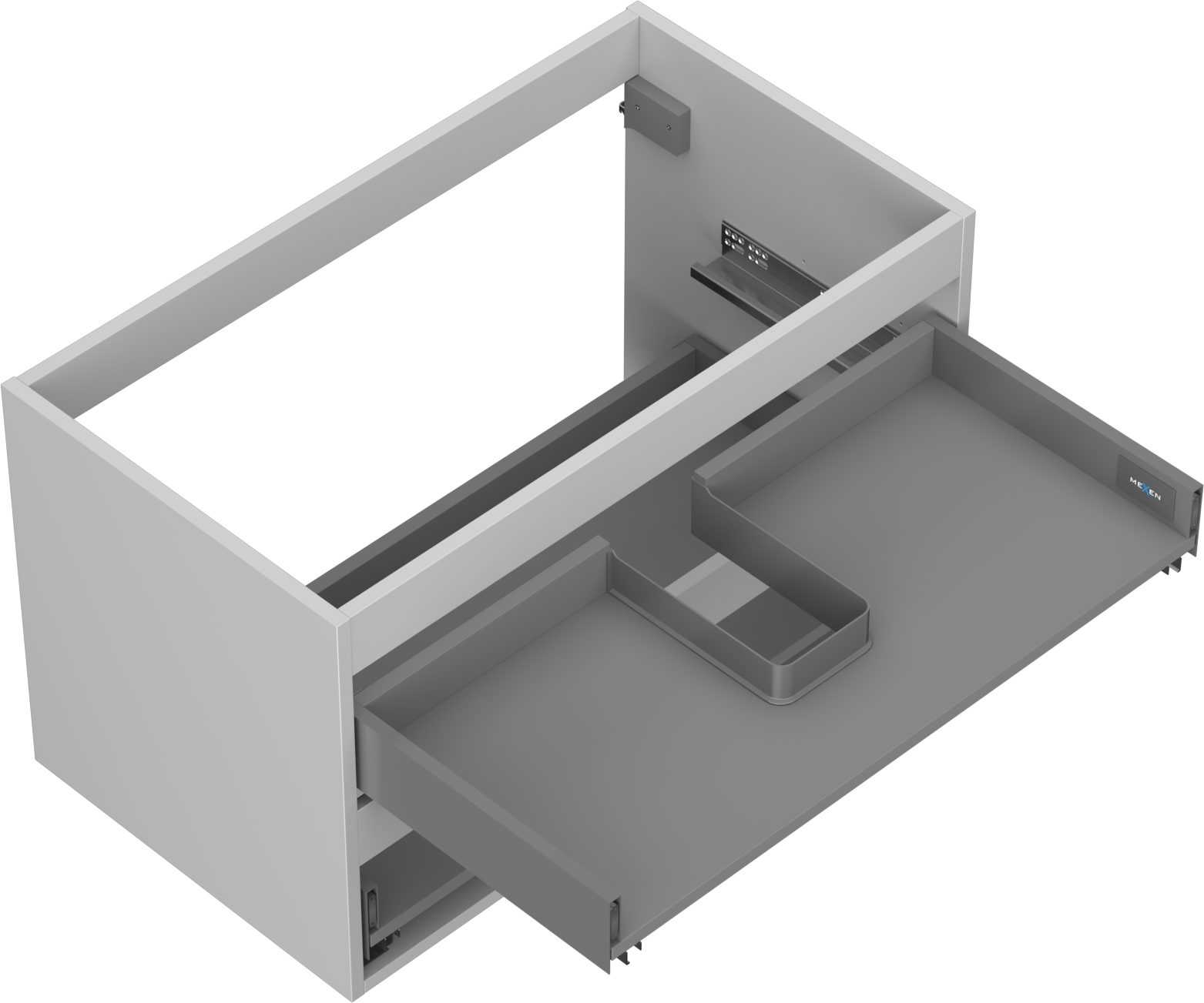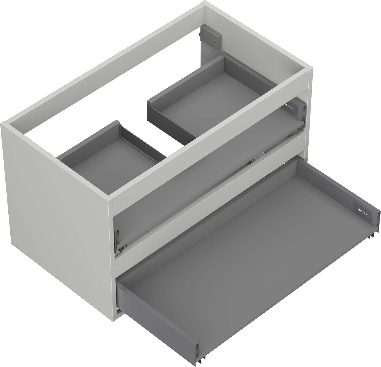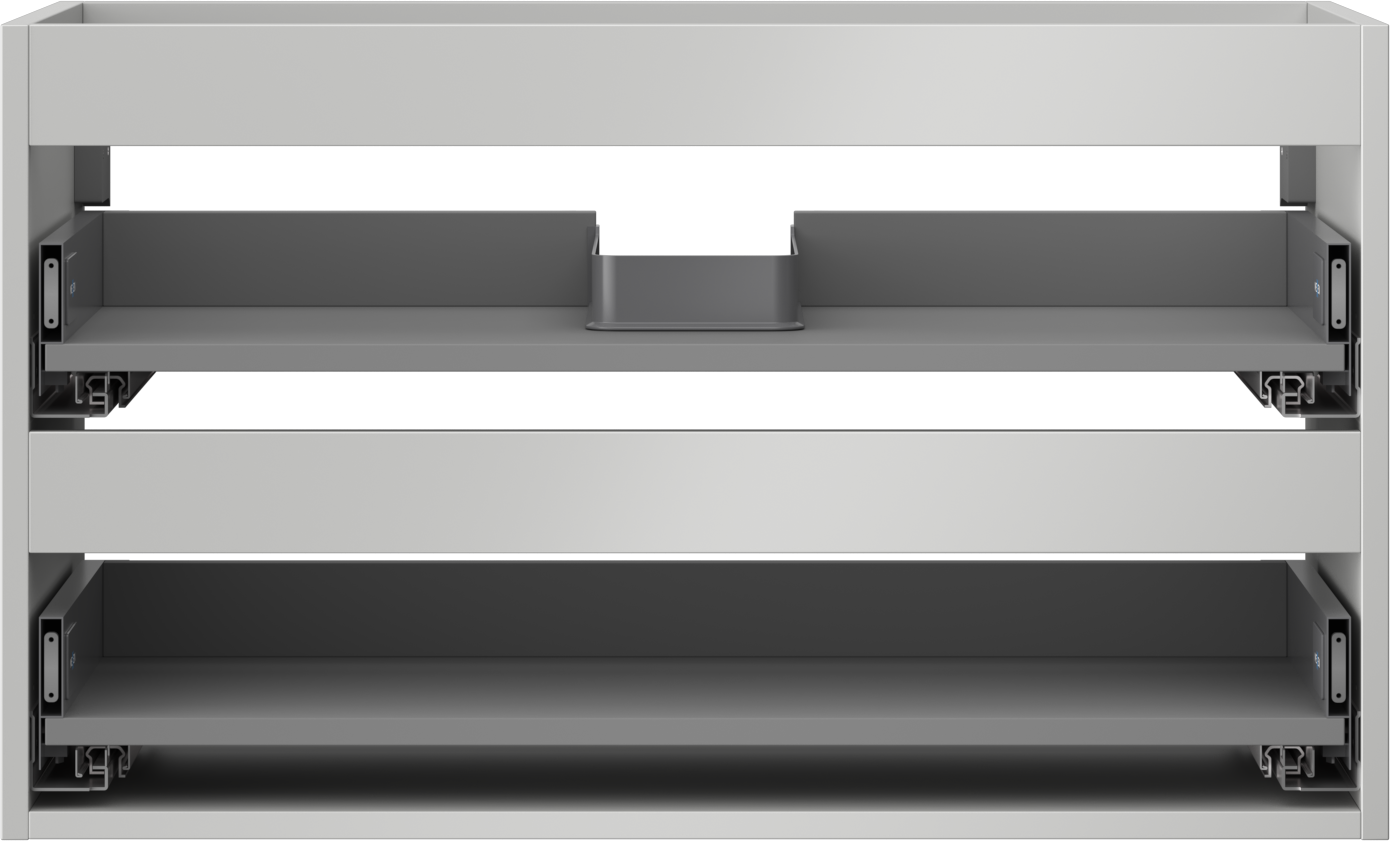 The cutout in the drawer is designed in such a way as to accommodate the siphon, which is essential in sink installations. This allows the furniture to be fully functional without having to give up drawer space for the installation.