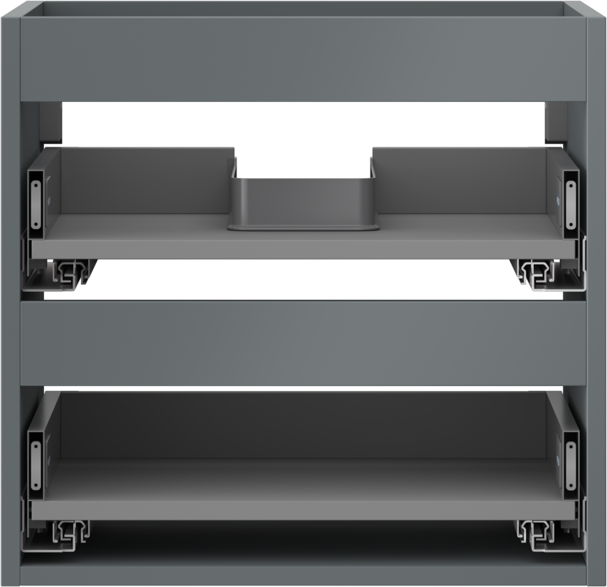The cutout in the drawer is designed in such a way as to accommodate the siphon, which is essential in sink installations. This allows the furniture to be fully functional without having to give up drawer space for the installation.