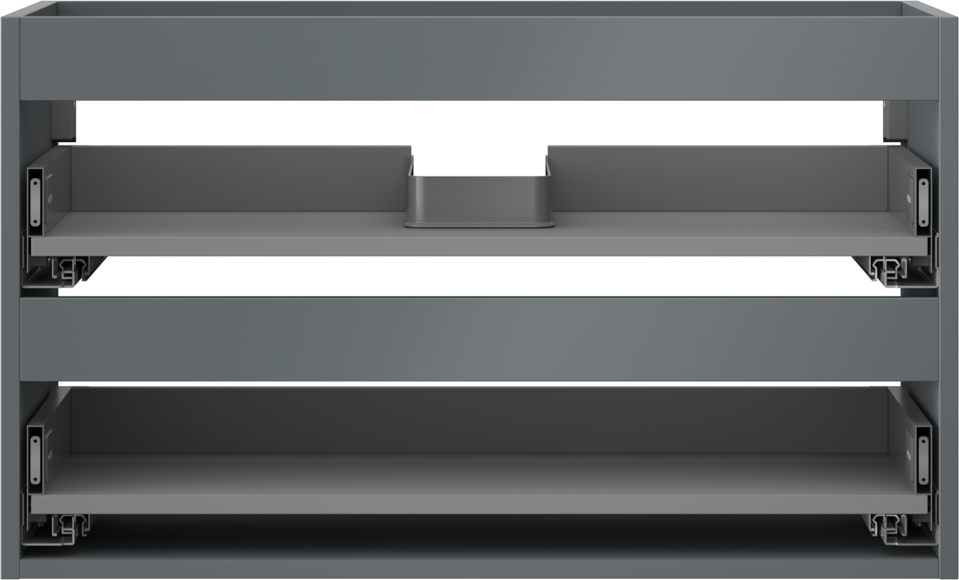 The cutout in the drawer is designed in such a way as to accommodate the siphon, which is essential in sink installations. This allows the furniture to be fully functional without having to give up drawer space for the installation.