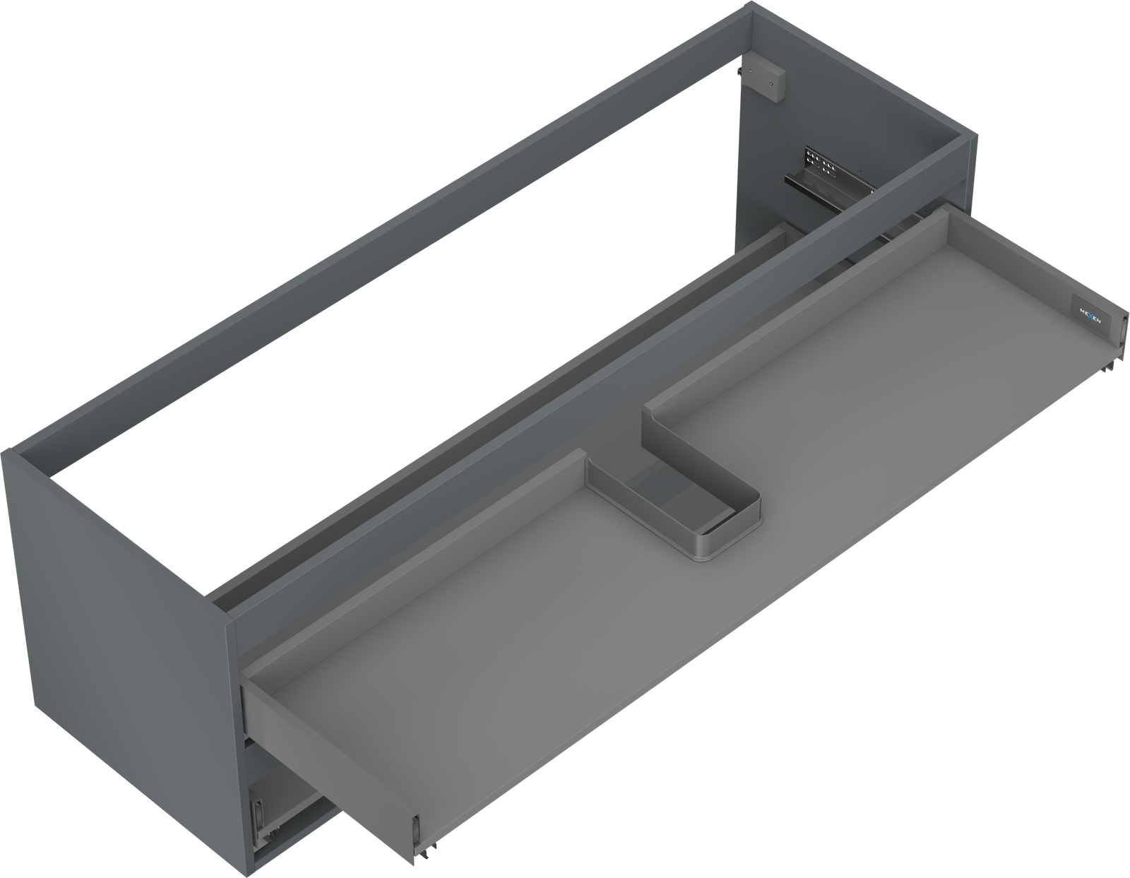The cutout in the drawer is designed in such a way as to accommodate the siphon, which is essential in sink installations. This allows the furniture to be fully functional without having to give up drawer space for the installation.
