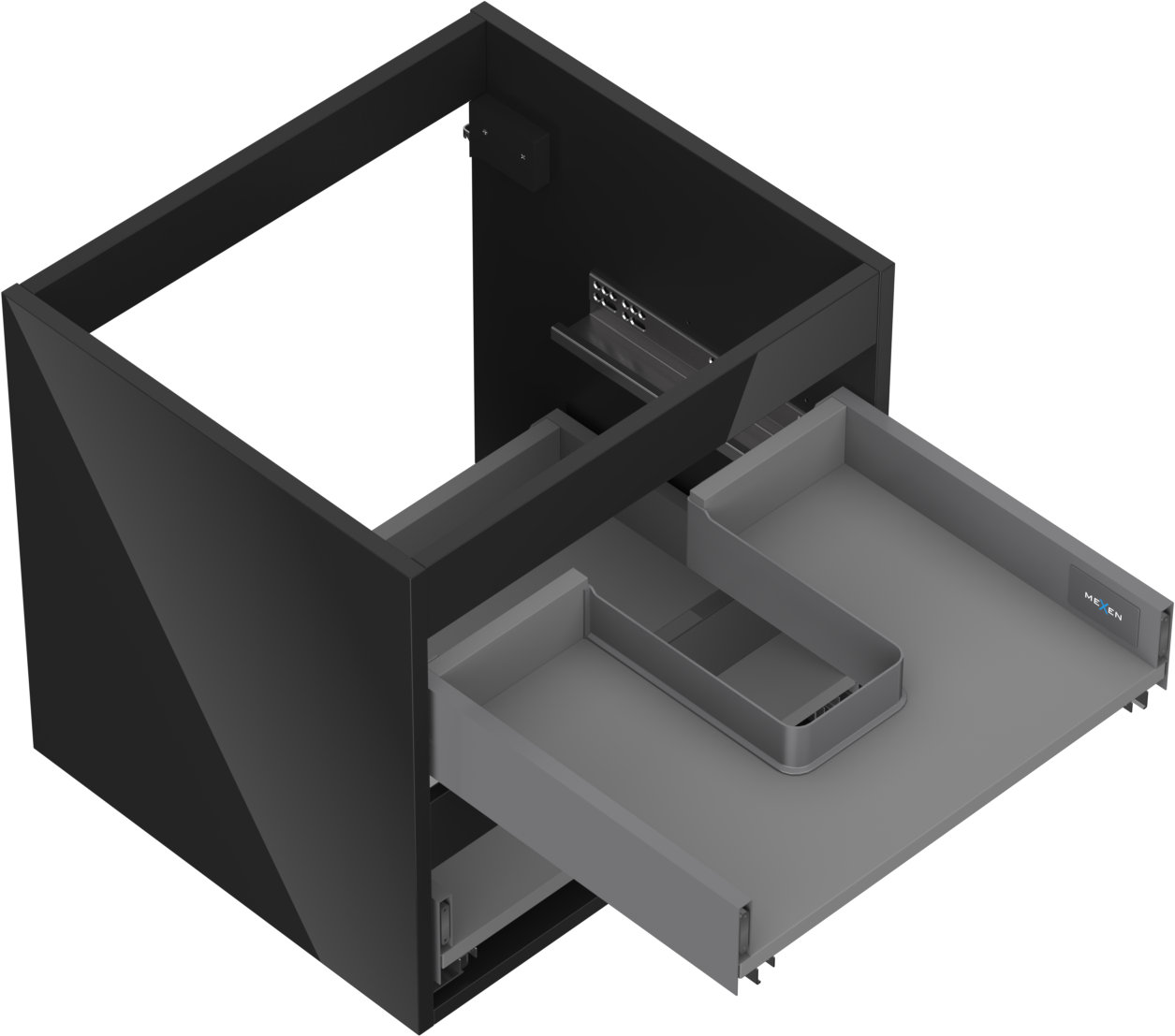 The cutout in the drawer is designed in such a way as to accommodate the siphon, which is essential in sink installations. This allows the furniture to be fully functional without having to give up drawer space for the installation.