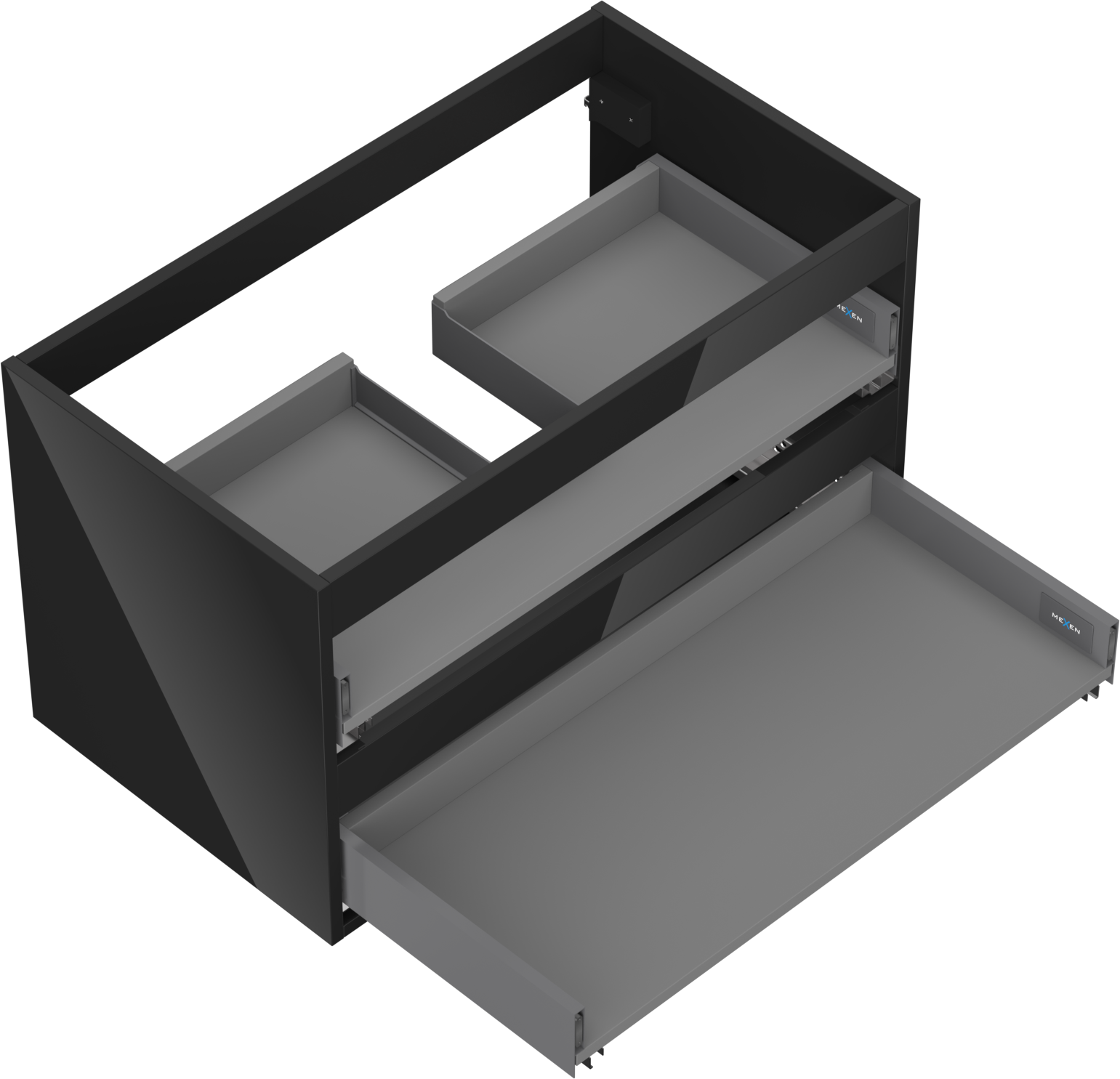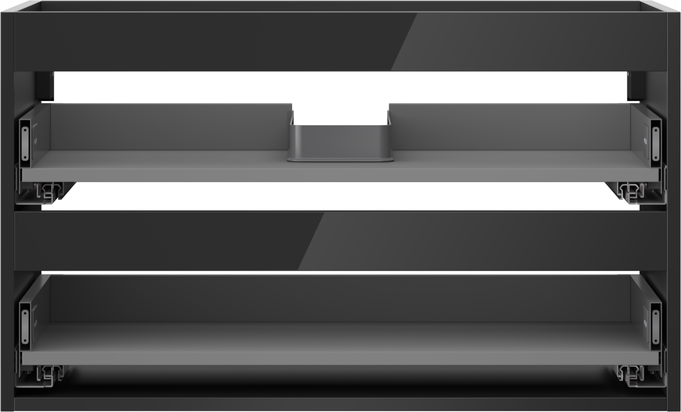 The cutout in the drawer is designed in such a way as to accommodate the siphon, which is essential in sink installations. This allows the furniture to be fully functional without having to give up drawer space for the installation.