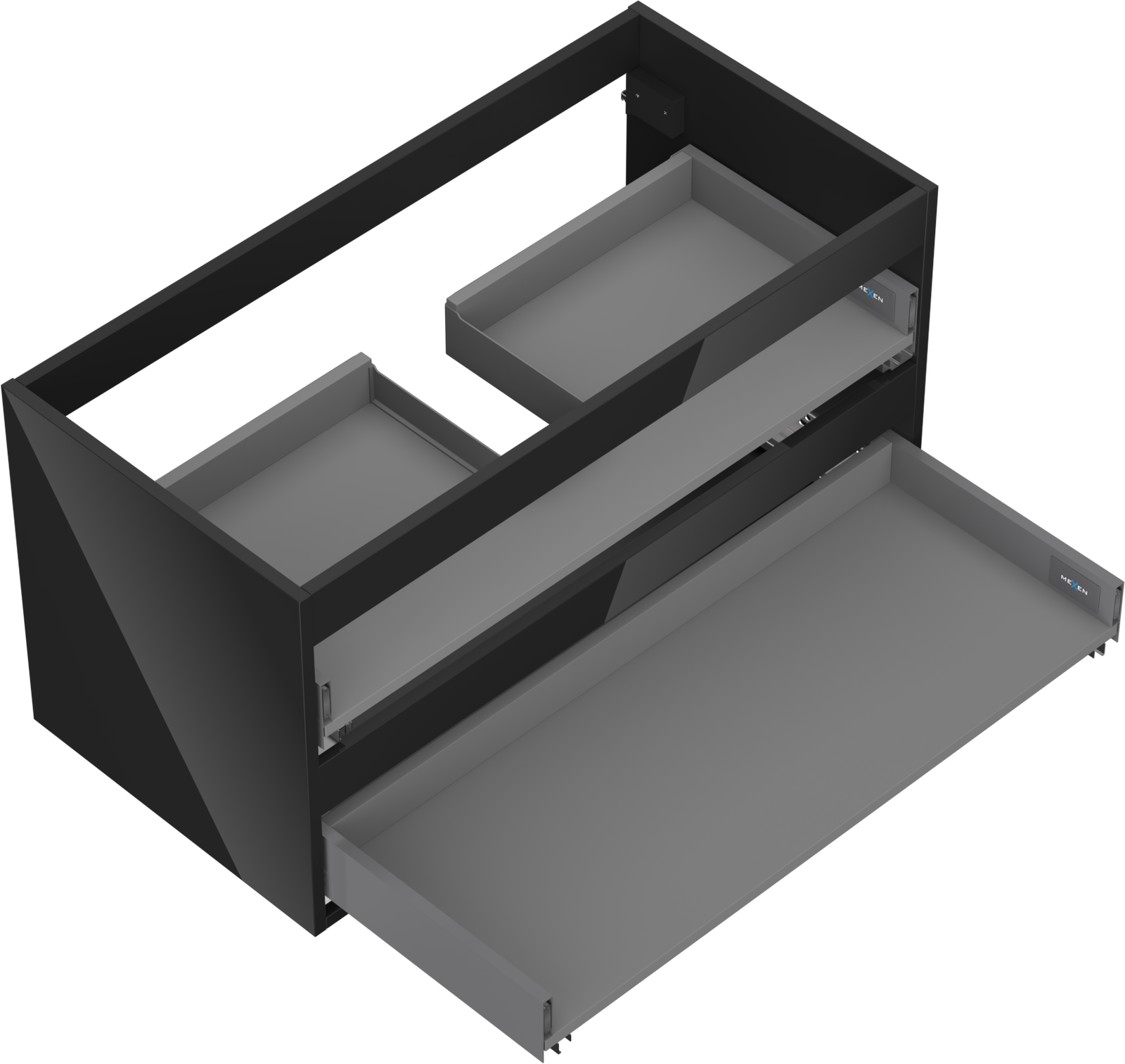 The cutout in the drawer is designed in such a way as to accommodate the siphon, which is essential in sink installations. This allows the furniture to be fully functional without having to give up drawer space for the installation.