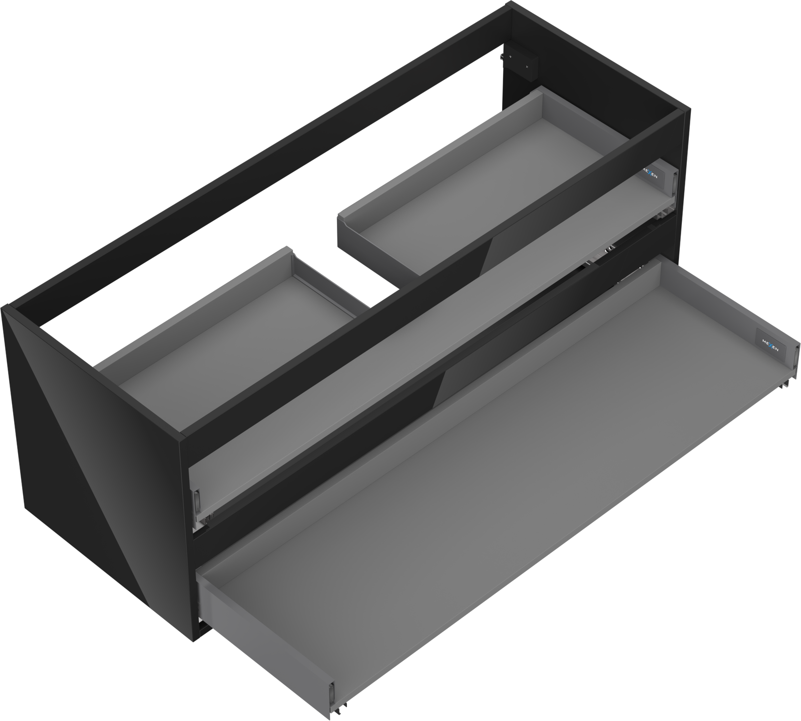 The cutout in the drawer is designed in such a way as to accommodate the siphon, which is essential in sink installations. This allows the furniture to be fully functional without having to give up drawer space for the installation.
