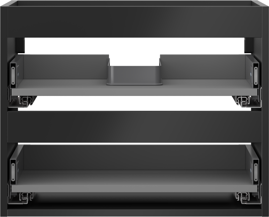 The cutout in the drawer is designed in such a way as to accommodate the siphon, which is essential in sink installations. This allows the furniture to be fully functional without having to give up drawer space for the installation.