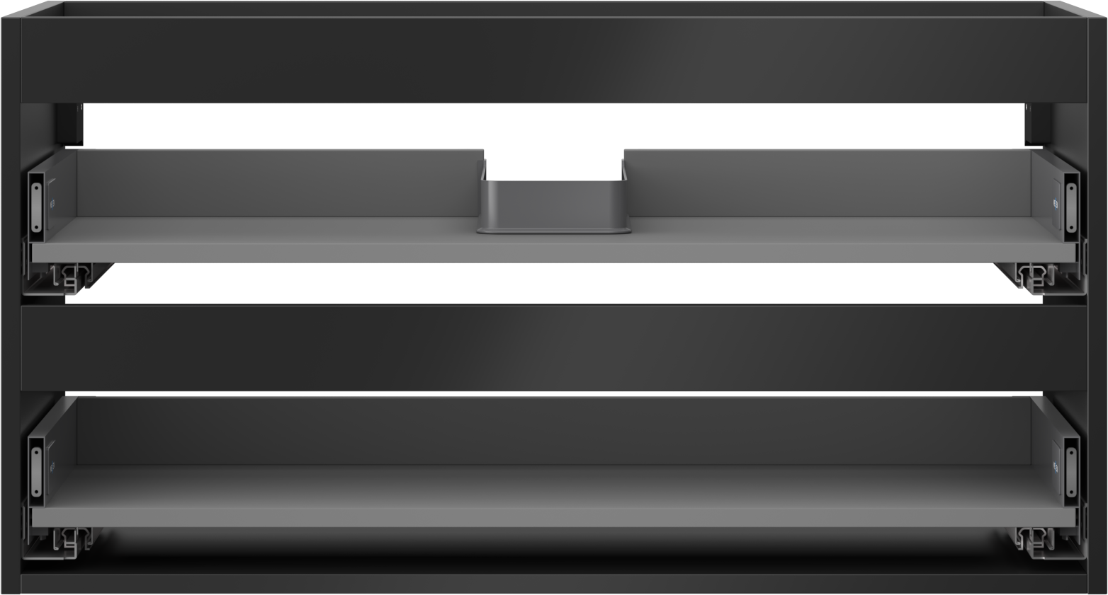 The cutout in the drawer is designed in such a way as to accommodate the siphon, which is essential in sink installations. This allows the furniture to be fully functional without having to give up drawer space for the installation.