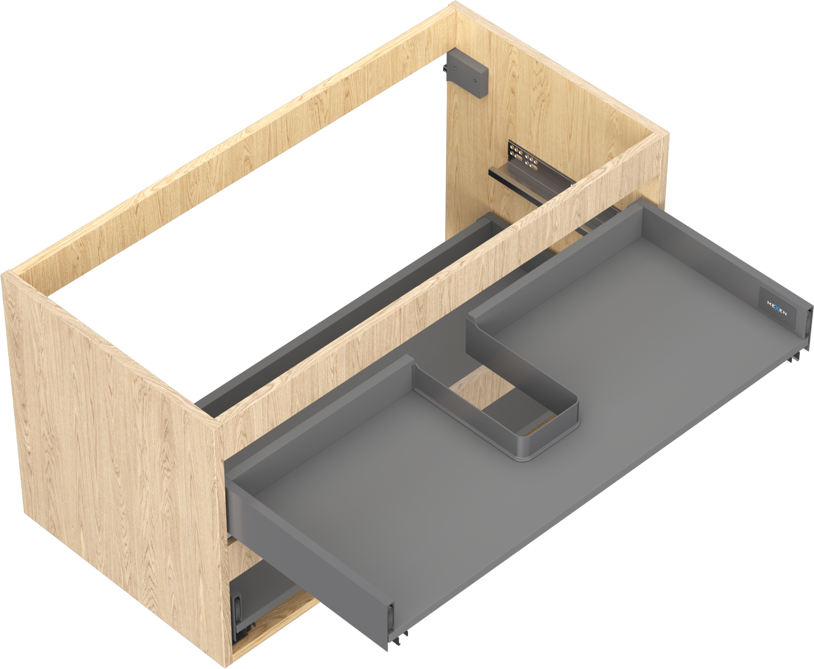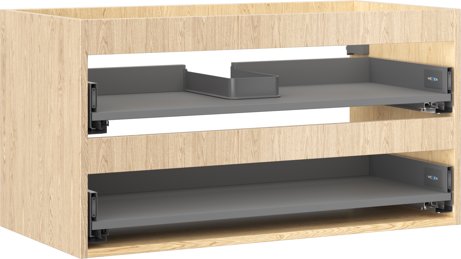 The cutout in the drawer is designed in such a way as to accommodate the siphon, which is essential in sink installations. This allows the furniture to be fully functional without having to give up drawer space for the installation.