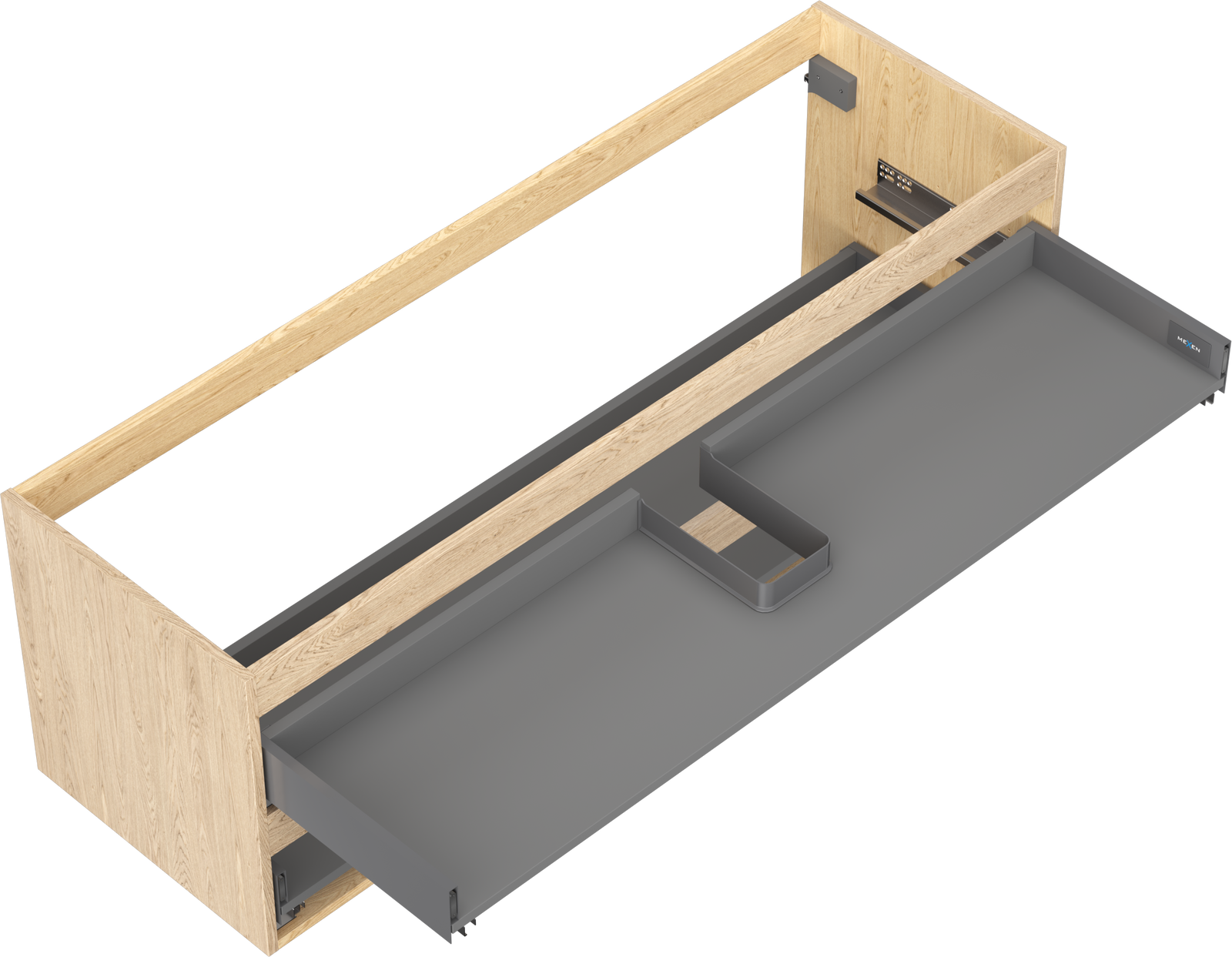 The cutout in the drawer is designed in such a way as to accommodate the siphon, which is essential in sink installations. This allows the furniture to be fully functional without having to give up drawer space for the installation.