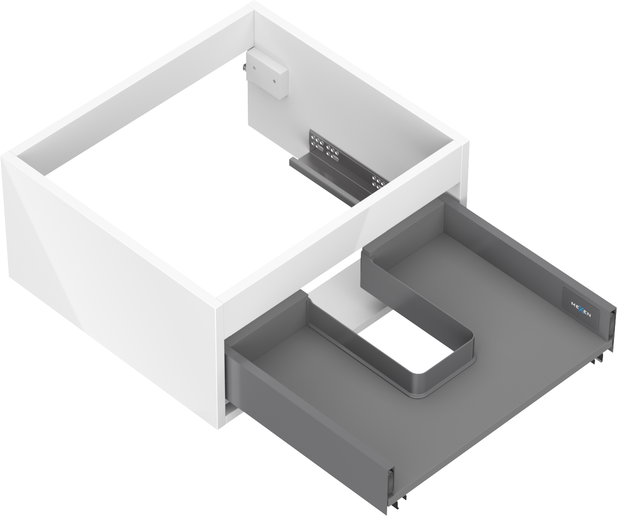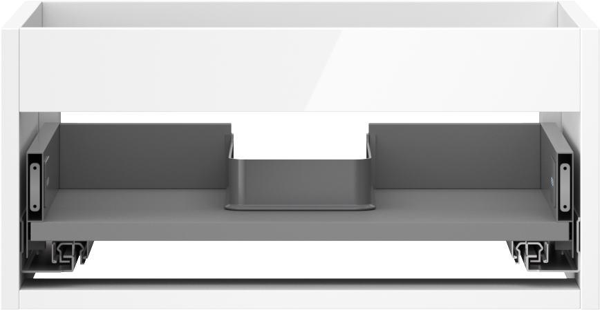 The cutout in the drawer is designed in such a way as to accommodate the siphon, which is essential in sink installations. This allows the furniture to be fully functional without having to give up drawer space for the installation.