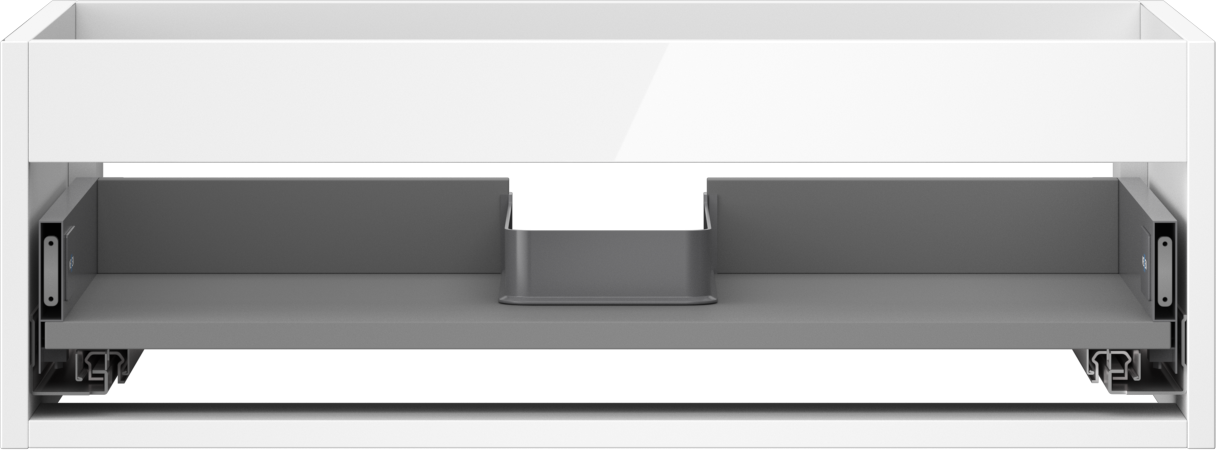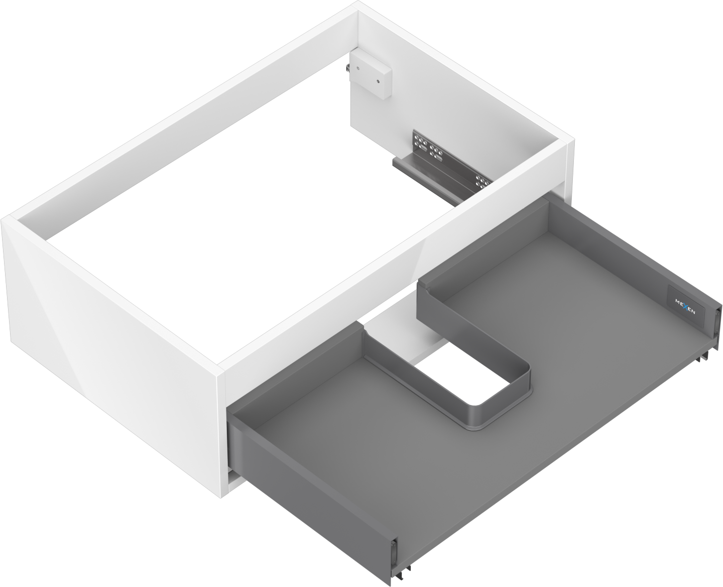 The cutout in the drawer is designed in such a way as to accommodate the siphon, which is essential in sink installations. This allows the furniture to be fully functional without having to give up drawer space for the installation.