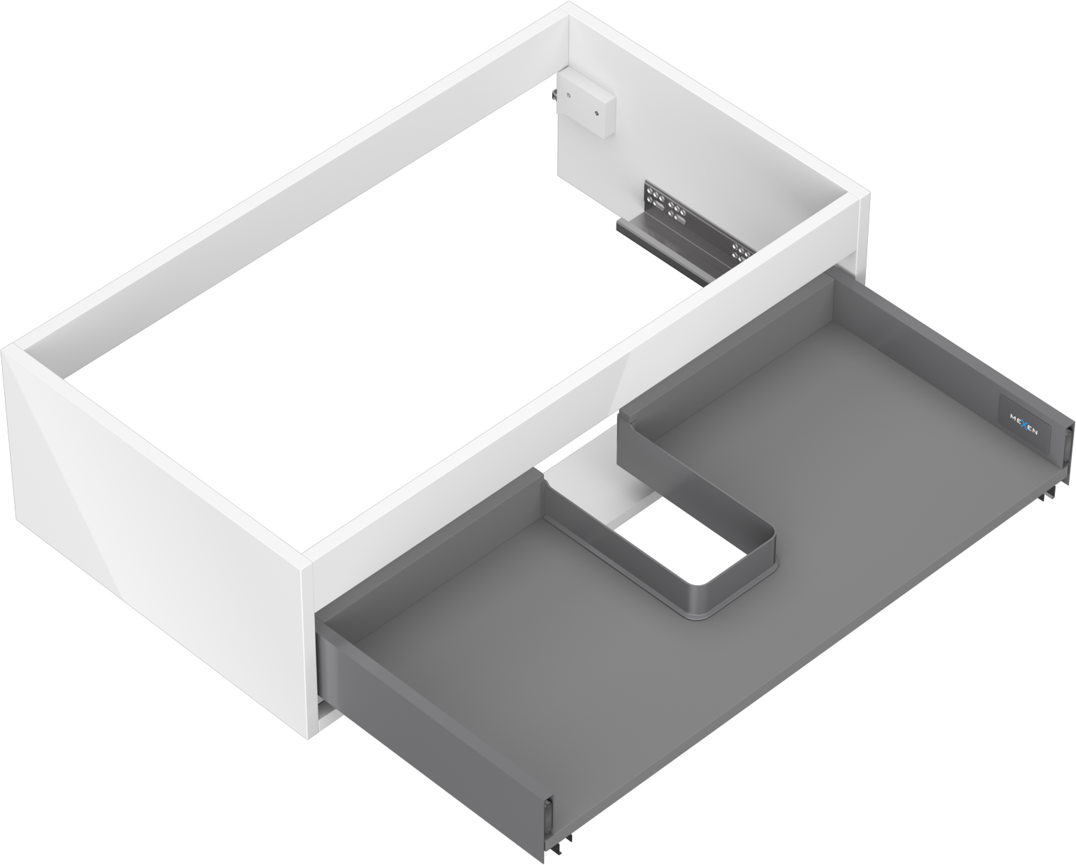 The cutout in the drawer is designed in such a way as to accommodate the siphon, which is essential in sink installations. This allows the furniture to be fully functional without having to give up drawer space for the installation.