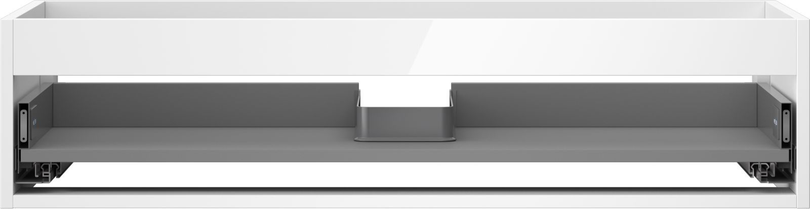The cutout in the drawer is designed in such a way as to accommodate the siphon, which is essential in sink installations. This allows the furniture to be fully functional without having to give up drawer space for the installation.