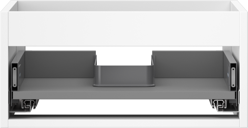 The cutout in the drawer is designed in such a way as to accommodate the siphon, which is essential in sink installations. This allows the furniture to be fully functional without having to give up drawer space for the installation.