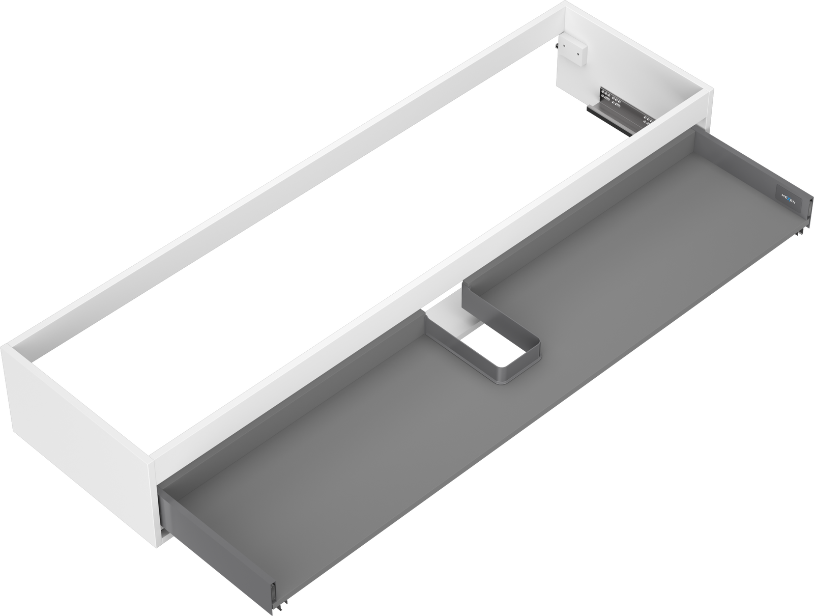 The cutout in the drawer is designed in such a way as to accommodate the siphon, which is essential in sink installations. This allows the furniture to be fully functional without having to give up drawer space for the installation.