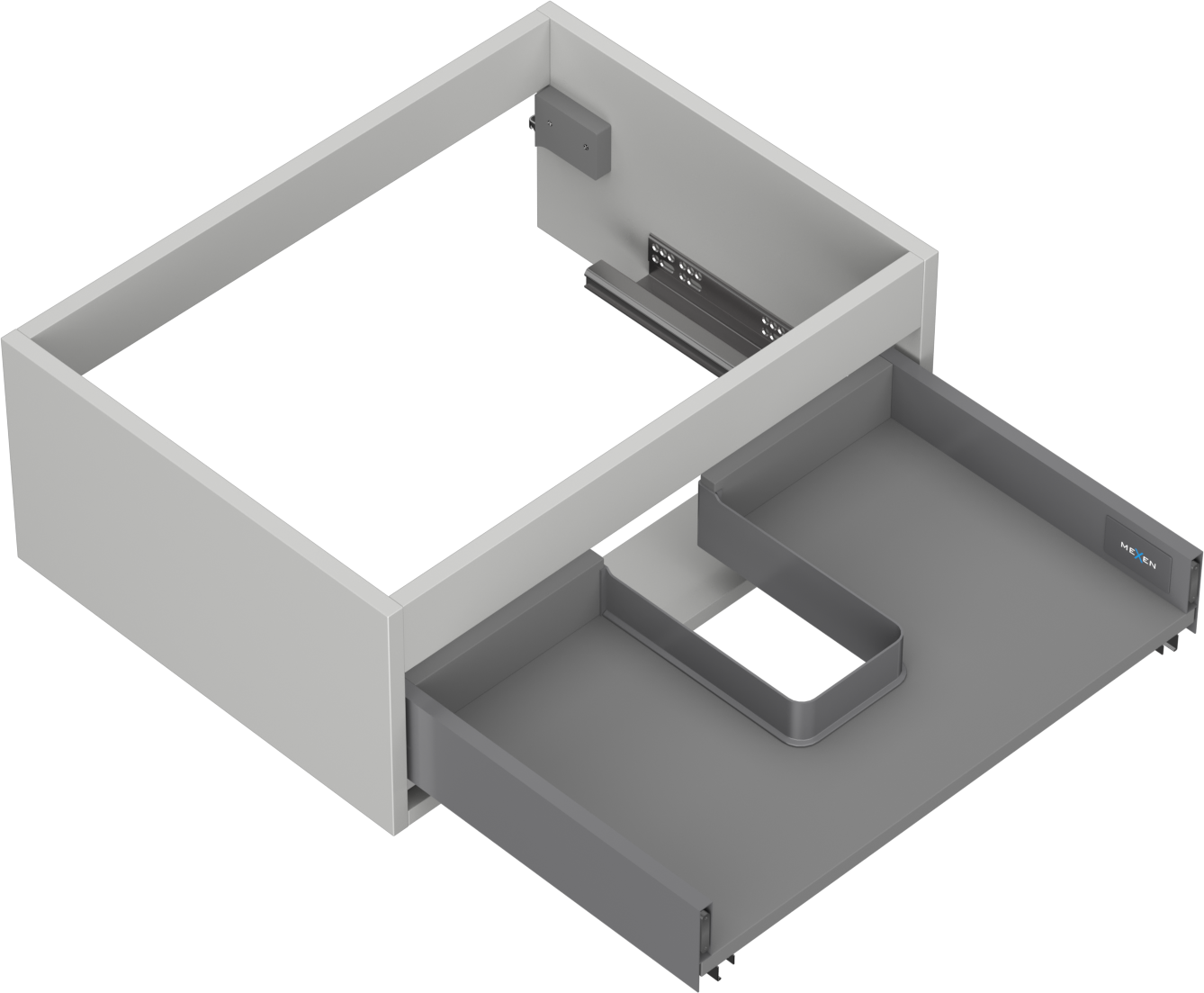 The cutout in the drawer is designed in such a way as to accommodate the siphon, which is essential in sink installations. This allows the furniture to be fully functional without having to give up drawer space for the installation.
