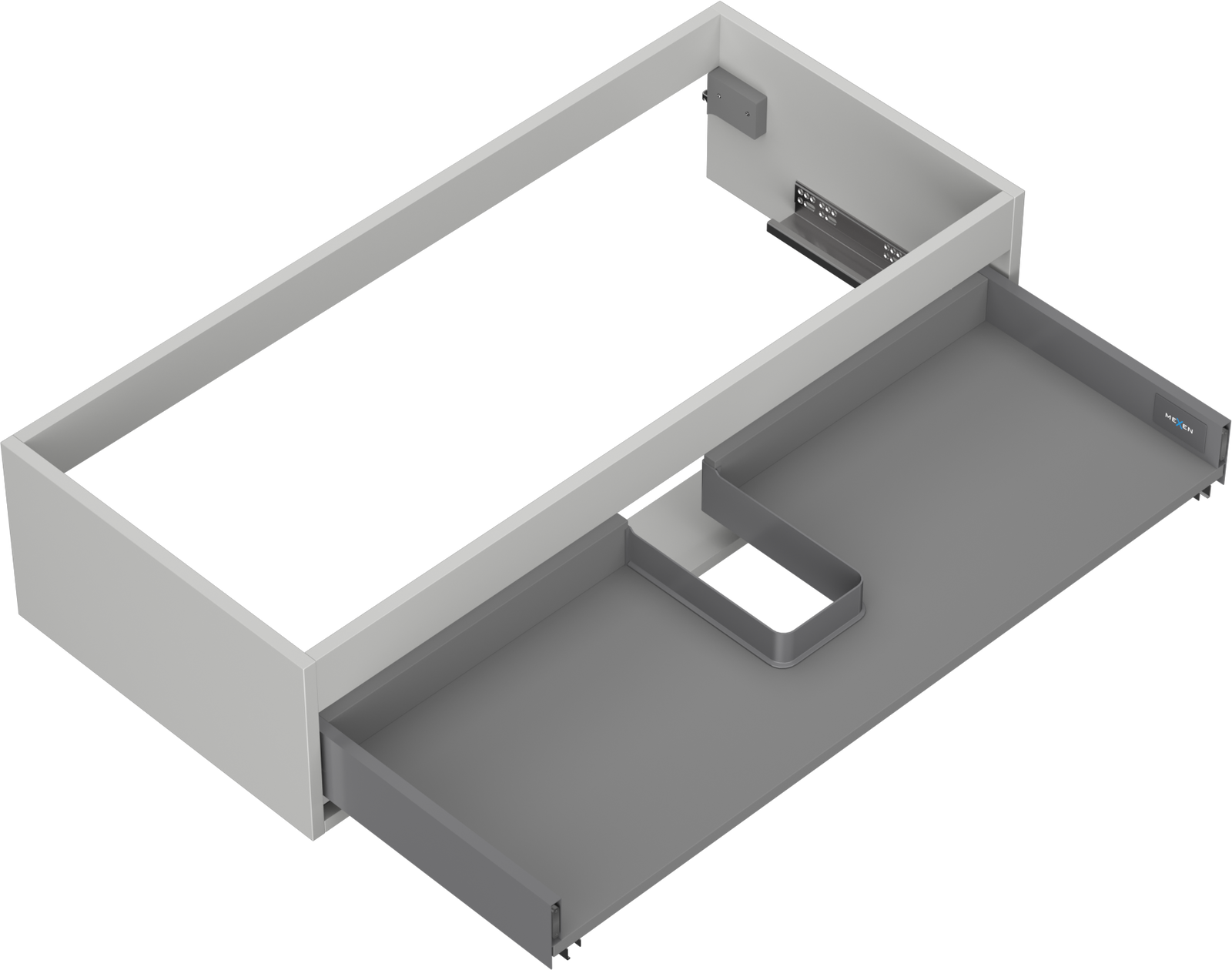 The cutout in the drawer is designed in such a way as to accommodate the siphon, which is essential in sink installations. This allows the furniture to be fully functional without having to give up drawer space for the installation.