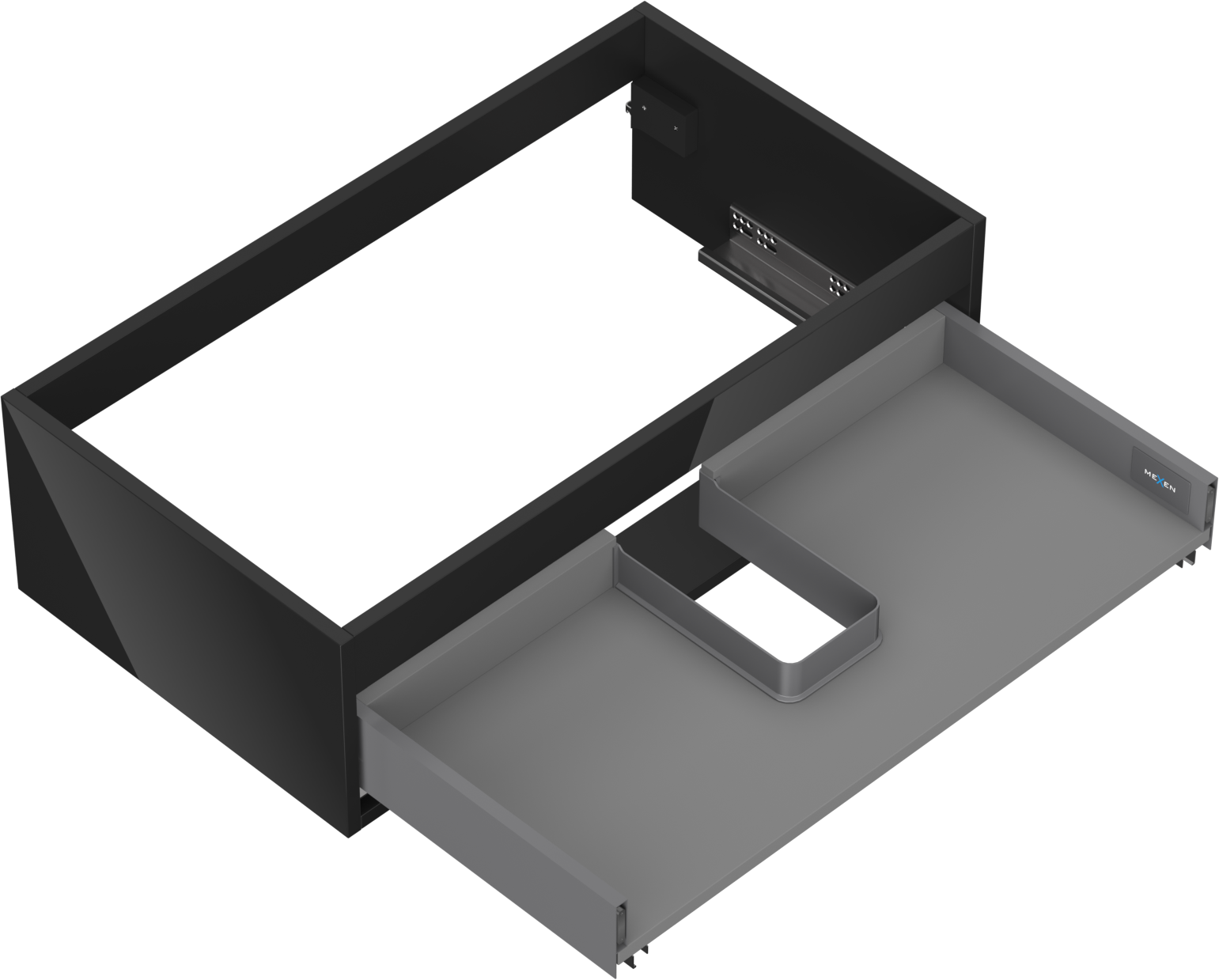 The cutout in the drawer is designed in such a way as to accommodate the siphon, which is essential in sink installations. This allows the furniture to be fully functional without having to give up drawer space for the installation.
