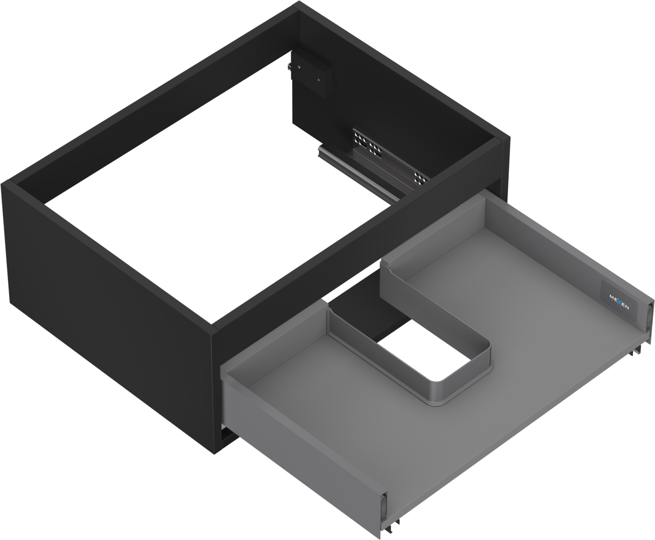 The cutout in the drawer is designed in such a way as to accommodate the siphon, which is essential in sink installations. This allows the furniture to be fully functional without having to give up drawer space for the installation.