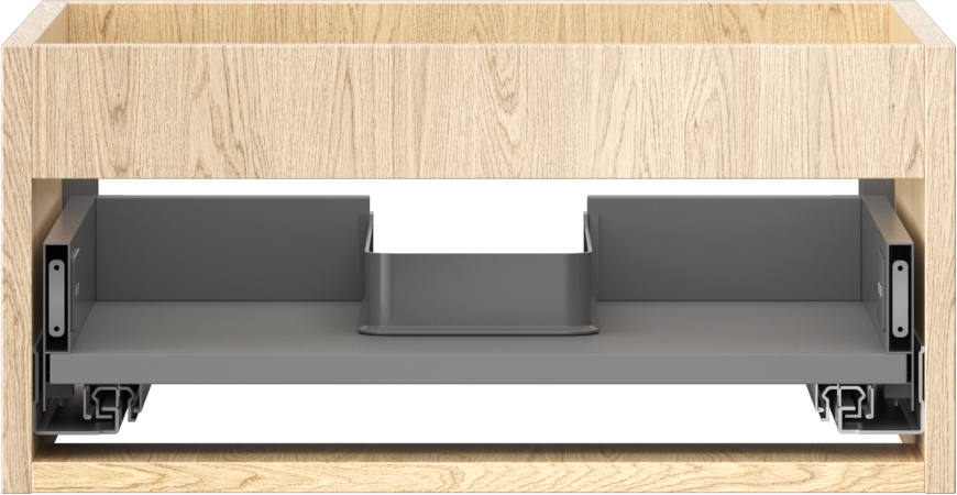 The cutout in the drawer is designed in such a way as to accommodate the siphon, which is essential in sink installations. This allows the furniture to be fully functional without having to give up drawer space for the installation.