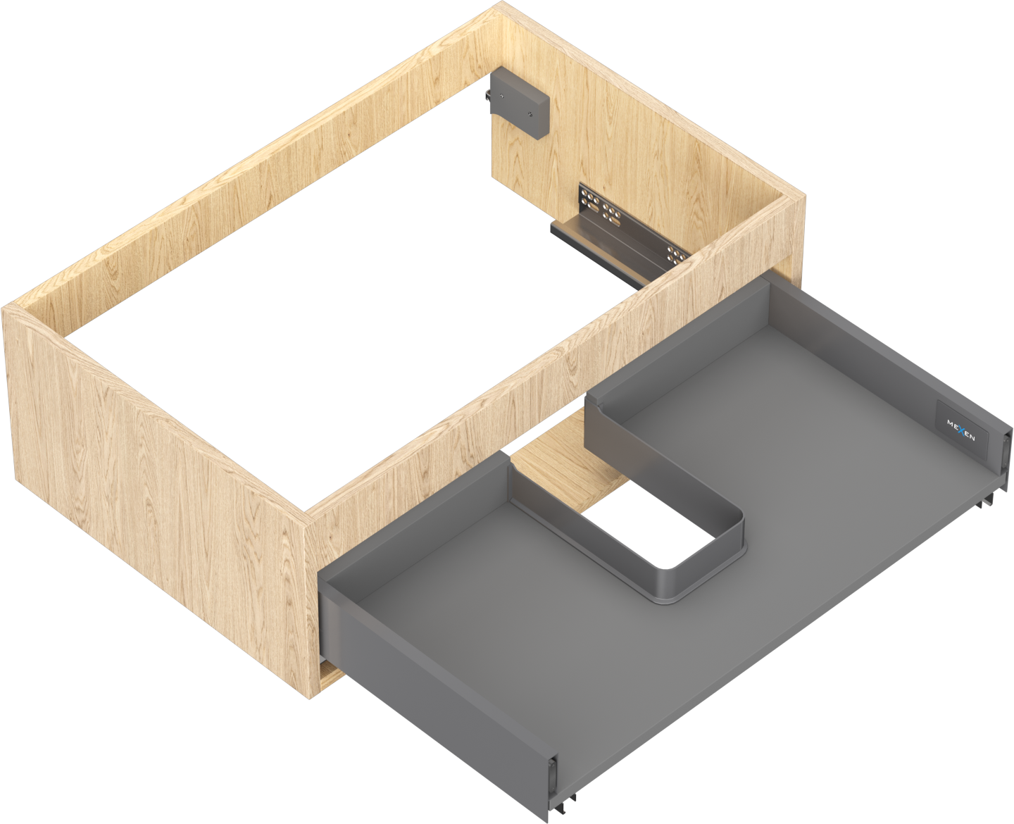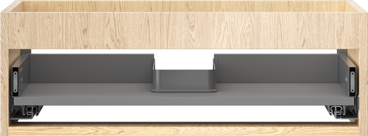 The cutout in the drawer is designed in such a way as to accommodate the siphon, which is essential in sink installations. This allows the furniture to be fully functional without having to give up drawer space for the installation.