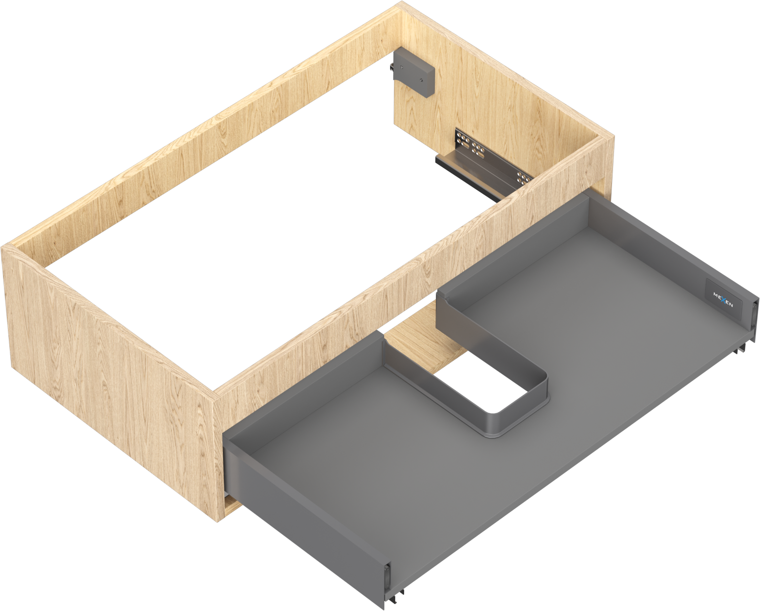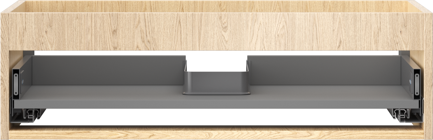 The cutout in the drawer is designed in such a way as to accommodate the siphon, which is essential in sink installations. This allows the furniture to be fully functional without having to give up drawer space for the installation.