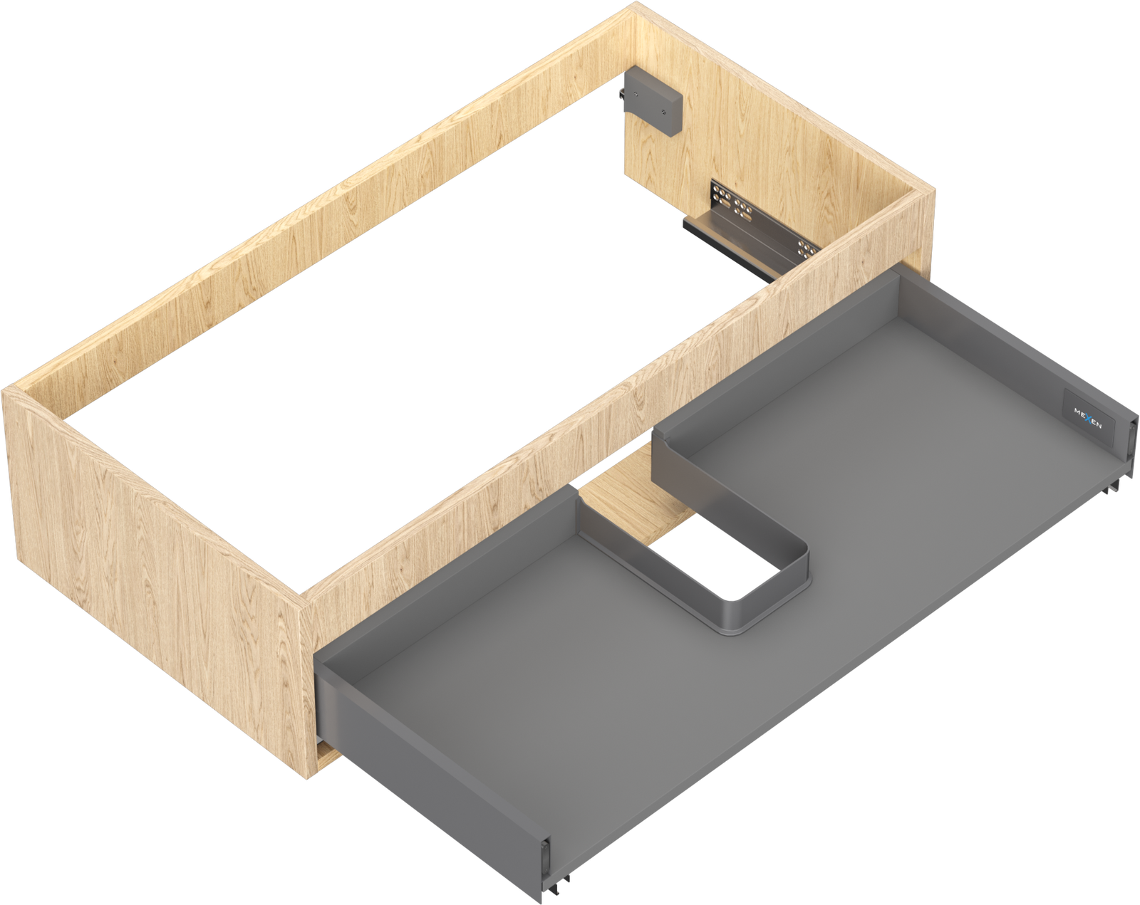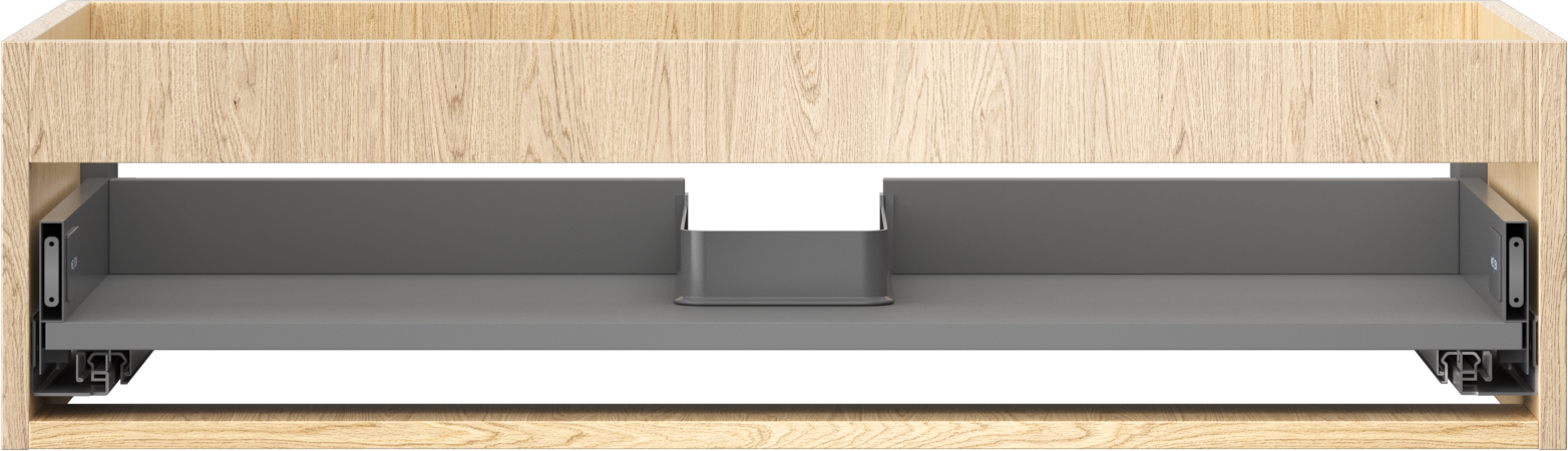 The cutout in the drawer is designed in such a way as to accommodate the siphon, which is essential in sink installations. This allows the furniture to be fully functional without having to give up drawer space for the installation.