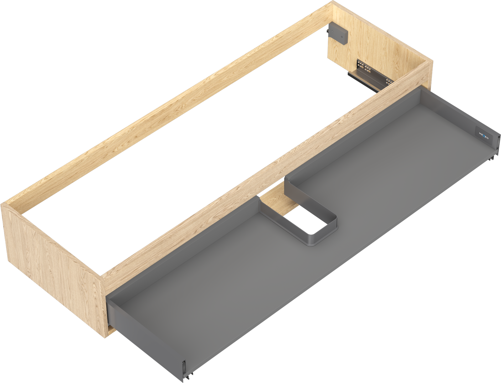 The cutout in the drawer is designed in such a way as to accommodate the siphon, which is essential in sink installations. This allows the furniture to be fully functional without having to give up drawer space for the installation.