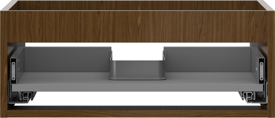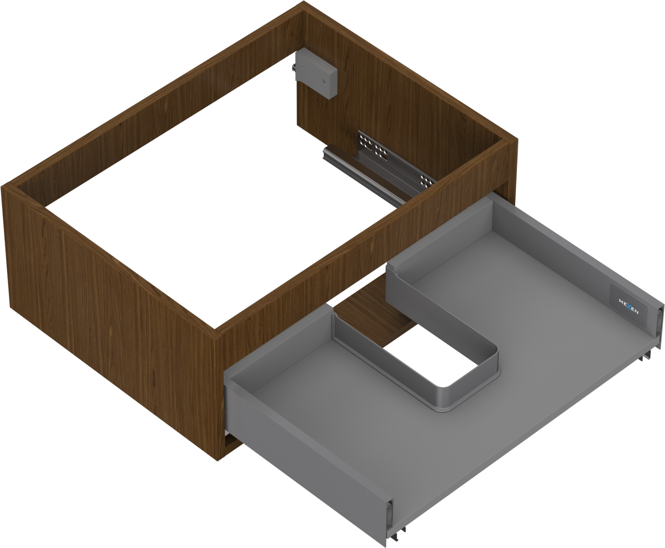 The cutout in the drawer is designed in such a way as to accommodate the siphon, which is essential in sink installations. This allows the furniture to be fully functional without having to give up drawer space for the installation.