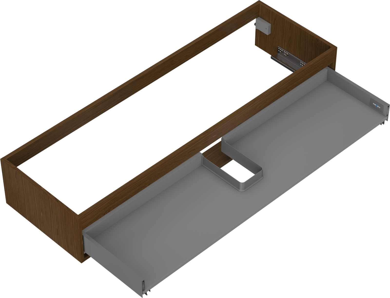 The cutout in the drawer is designed in such a way as to accommodate the siphon, which is essential in sink installations. This allows the furniture to be fully functional without having to give up drawer space for the installation.