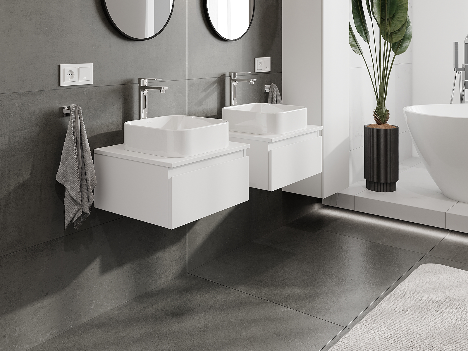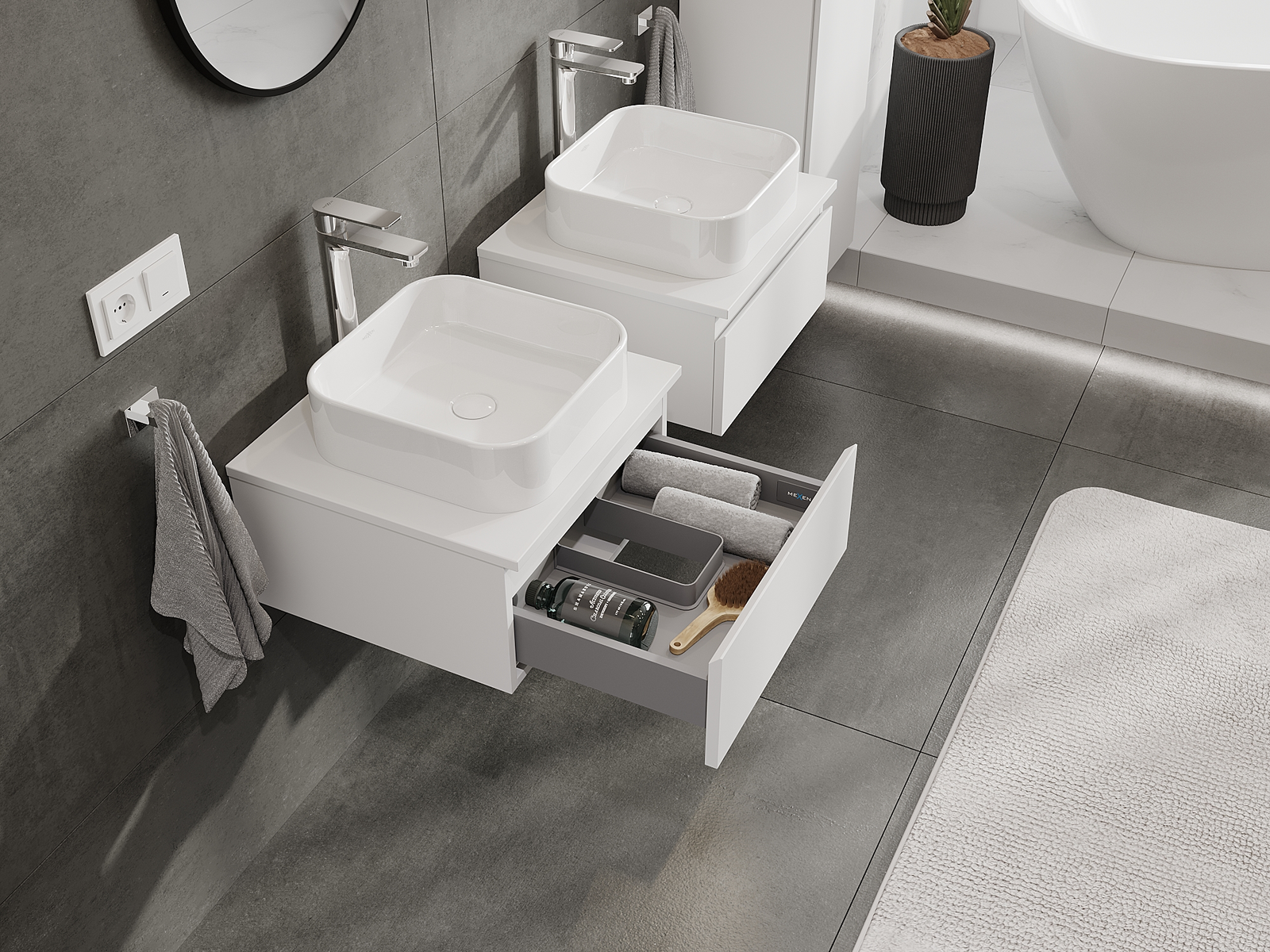 Our modular bathroom furniture can be combined in various colour configurations, allowing for complete personalisation. You can choose both the appearance and functions of individual elements, enabling you to adapt the furniture to your own stylistic and functional preferences.