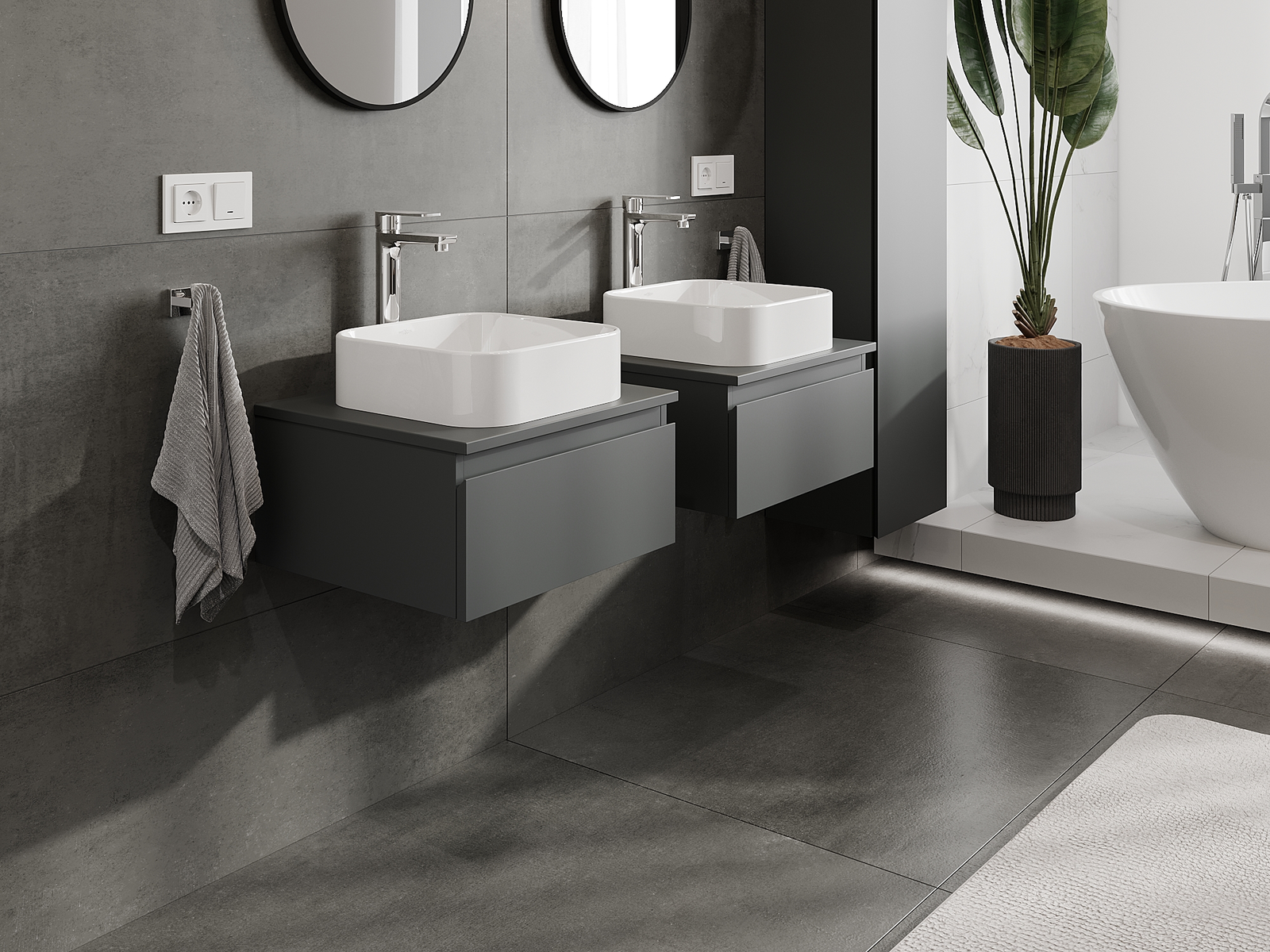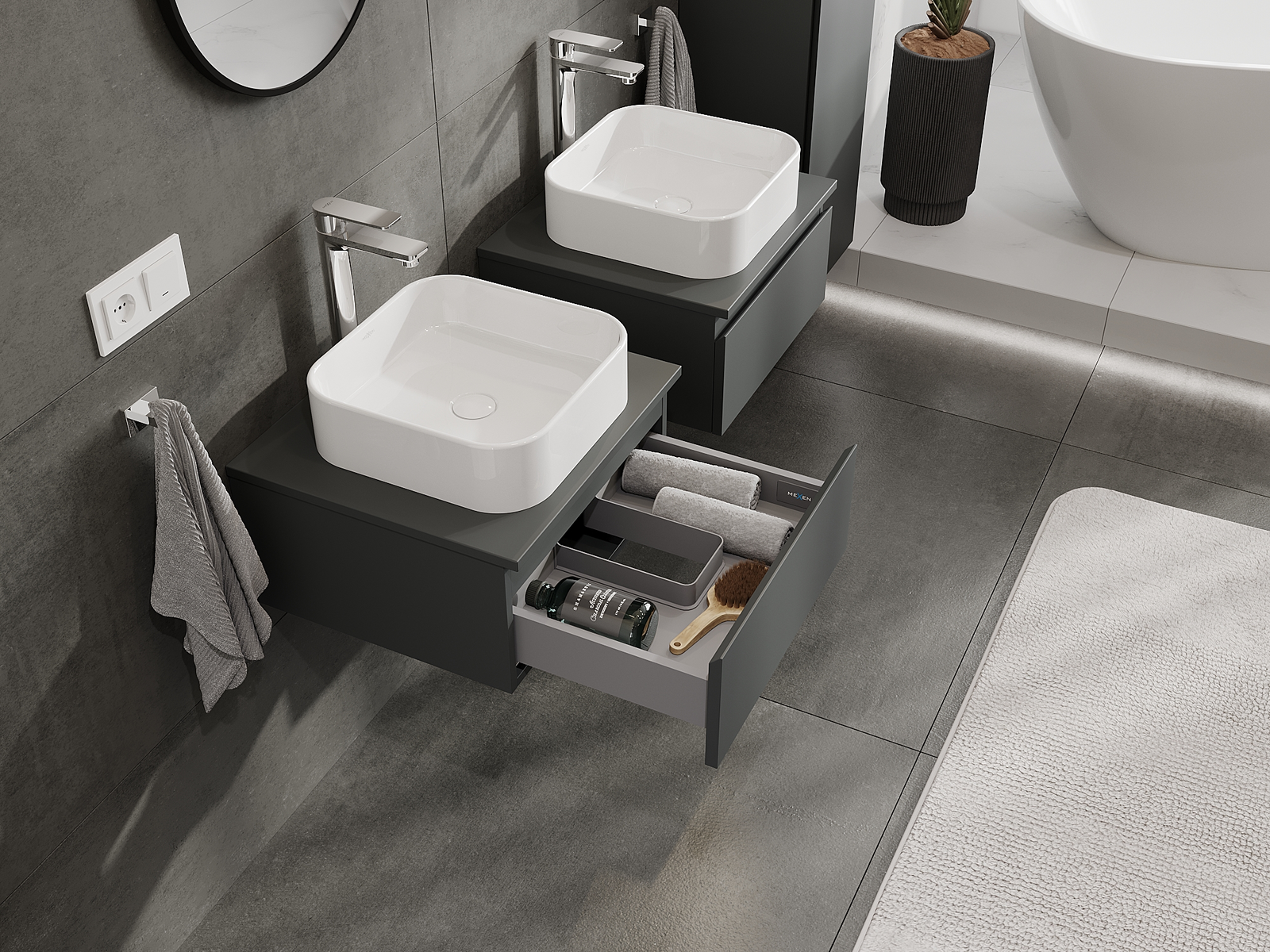 Our modular bathroom furniture can be combined in various colour configurations, allowing for complete personalisation. You can choose both the appearance and functions of individual elements, enabling you to adapt the furniture to your own stylistic and functional preferences.