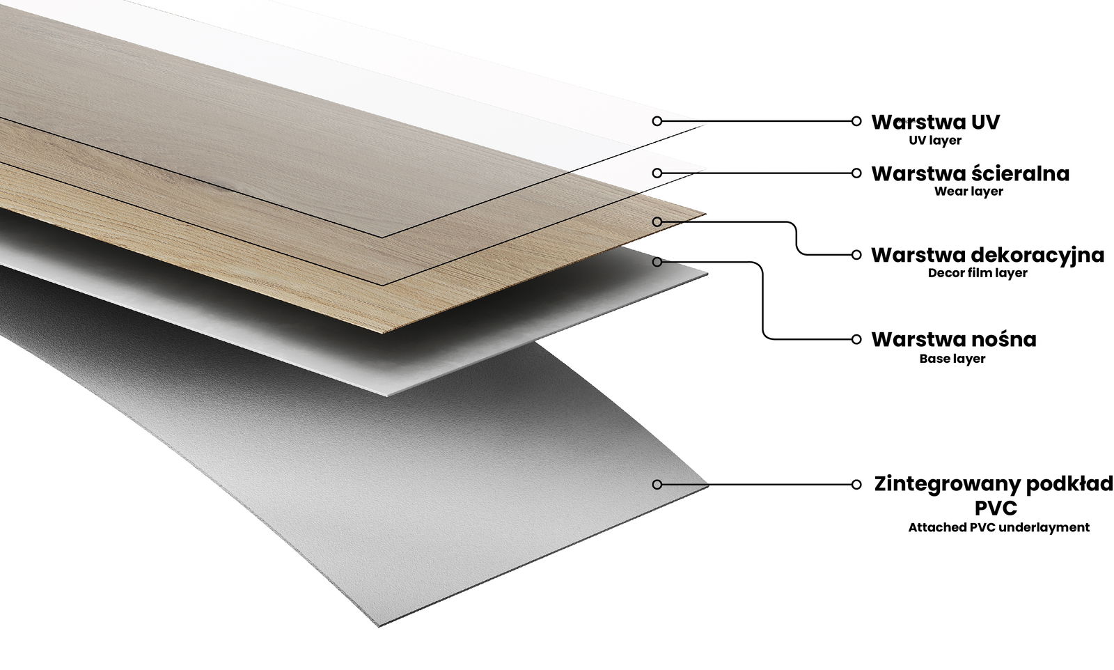 When laying vinyl panels, it is important to use an underlay that provides thermal and acoustic insulation, as well as ensuring the stability of the floor. Our product has an integrated underlay - thanks to this solution, we don't need to lay additional materials on the floor, making the floor installation much more convenient and faster.