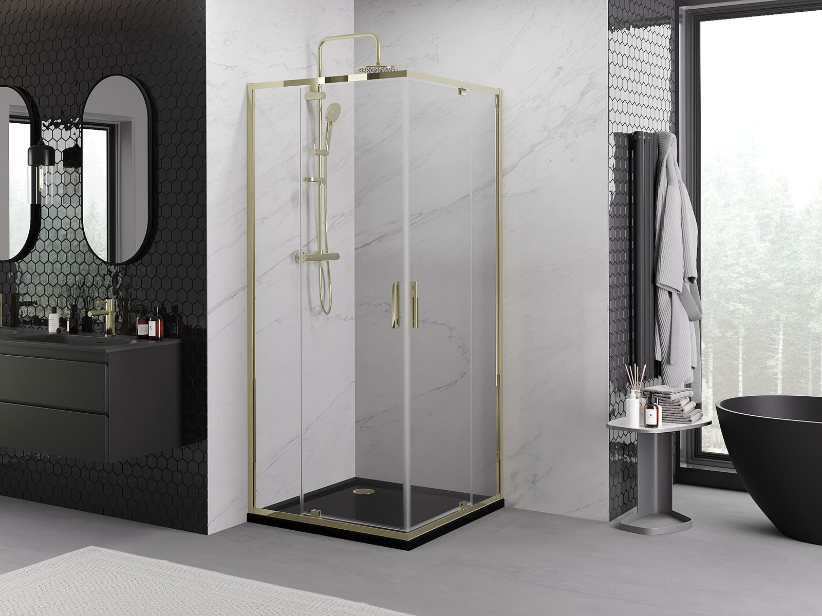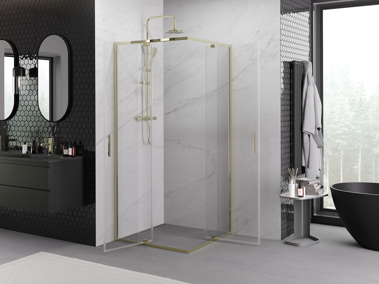 Mexen Exo square hinged shower cabin 90 x 90 cm, transparent, gold - 8110-090-090-50-00