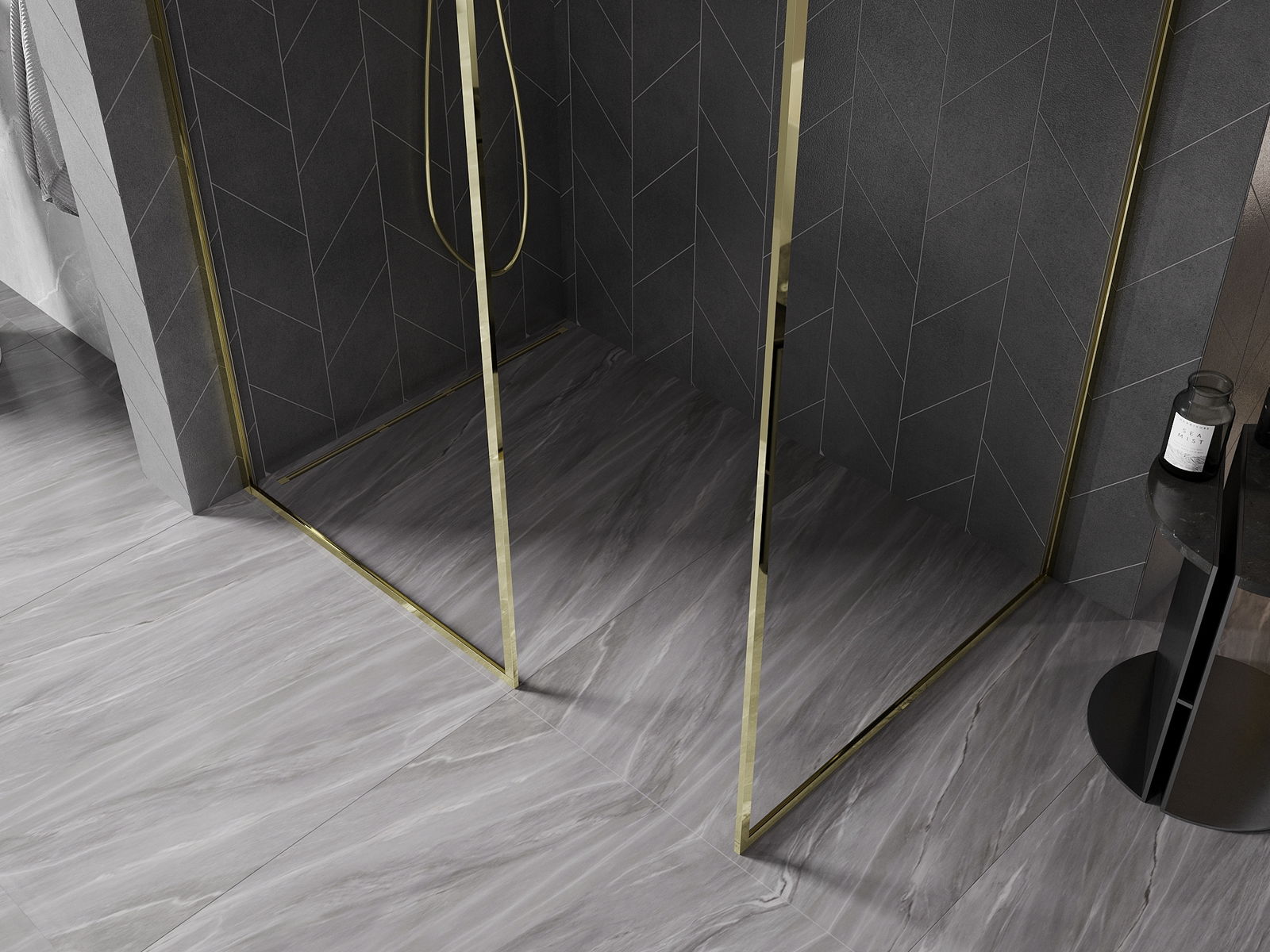 Mexen Kioto-F Walk-in Shower Screen with Frame 160 x 75 cm, Transparent 8 mm, Gold - 800-160-202-04-50-075