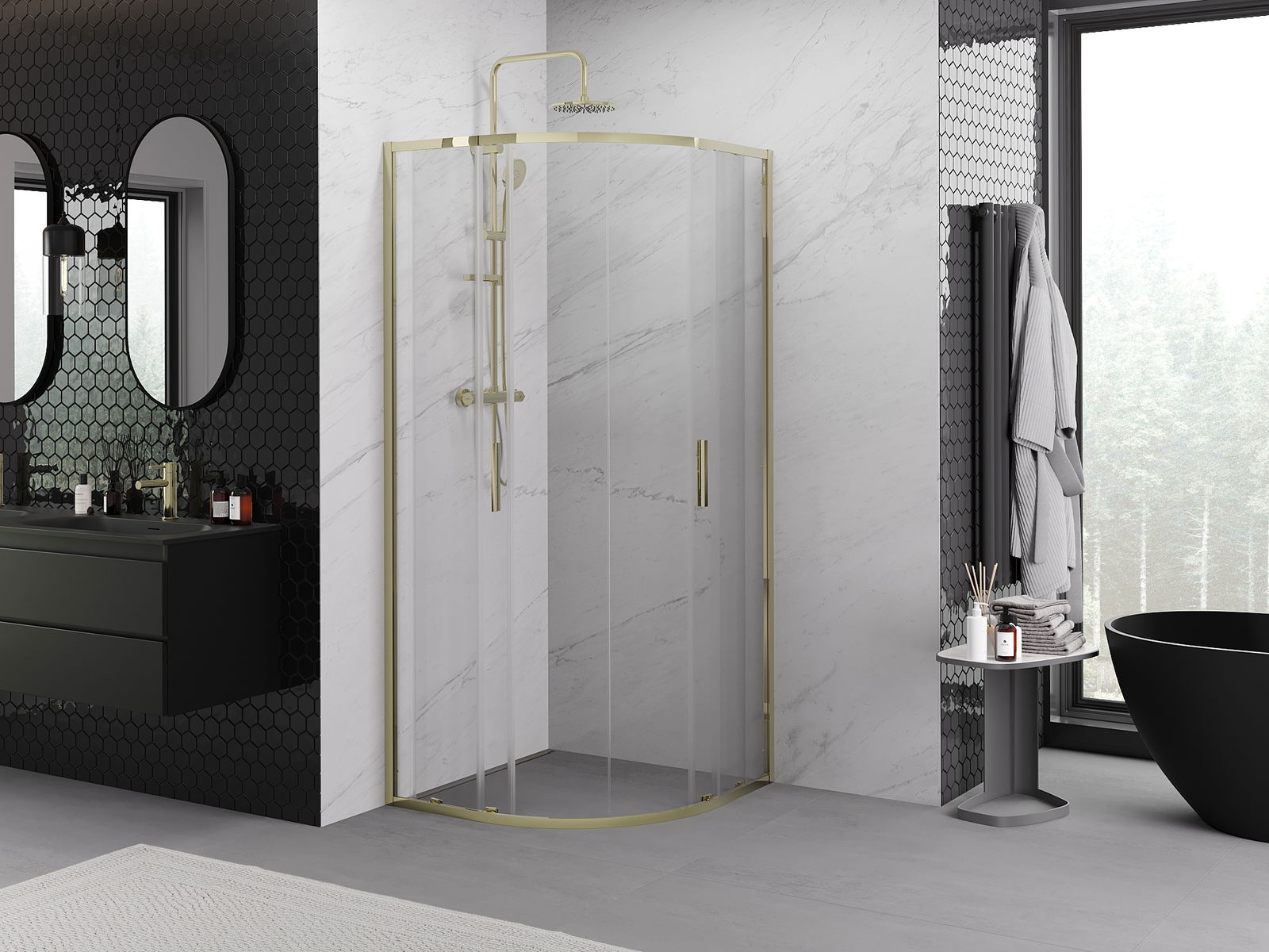 Mexen Exo semi-circular sliding shower cabin 80 x 80 cm, transparent, gold - 8132-080-080-50-00