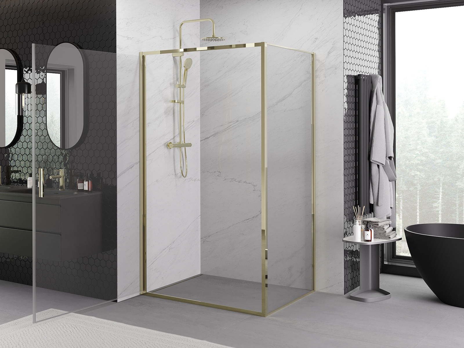 A handy and comfortable handle made from durable and resistant metal. Its trendy shape combined with a finish matched to the colour of the profiles gives the whole a modern and stylish look, highlighting the aesthetics of every bathroom.