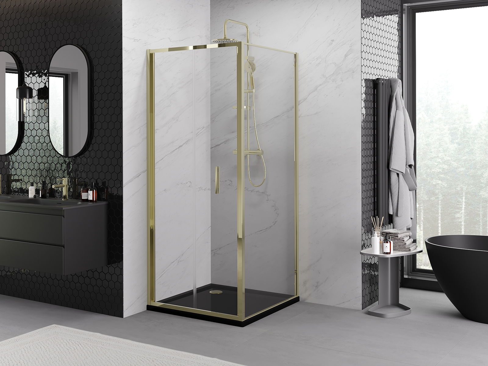 A handy and comfortable handle made from durable and resistant metal. Its trendy shape combined with a finish matched to the colour of the profiles gives the whole a modern and stylish look, highlighting the aesthetics of every bathroom.