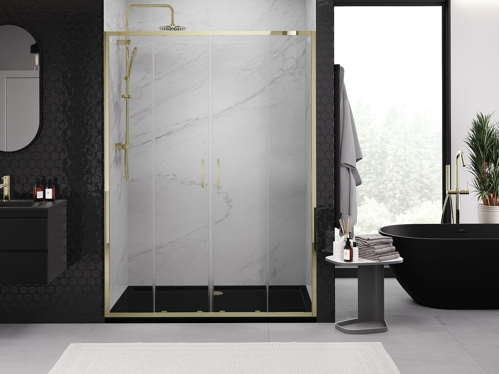 Sliding doors move along special guides and do not require additional space to open them, making them ideal for smaller bathrooms. Thanks to the double rollers with a metal body, their movement is smooth.