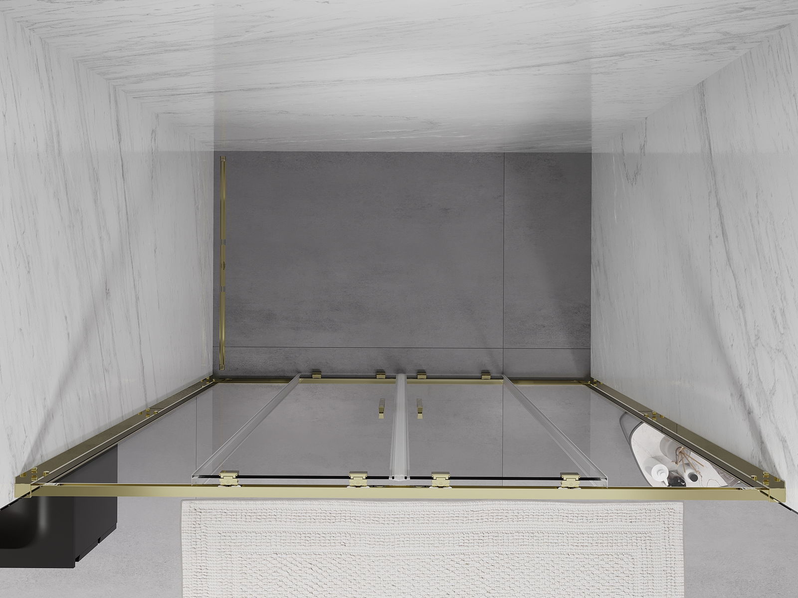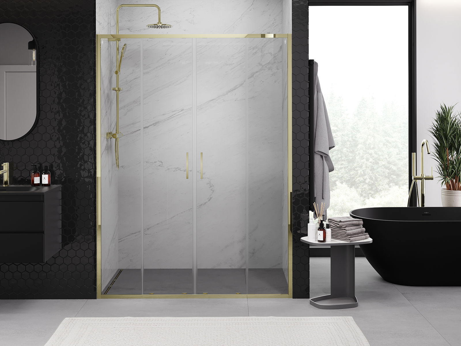 Mexen Exo double sliding shower doors 160 cm, transparent, gold - 8152-160-000-50-00