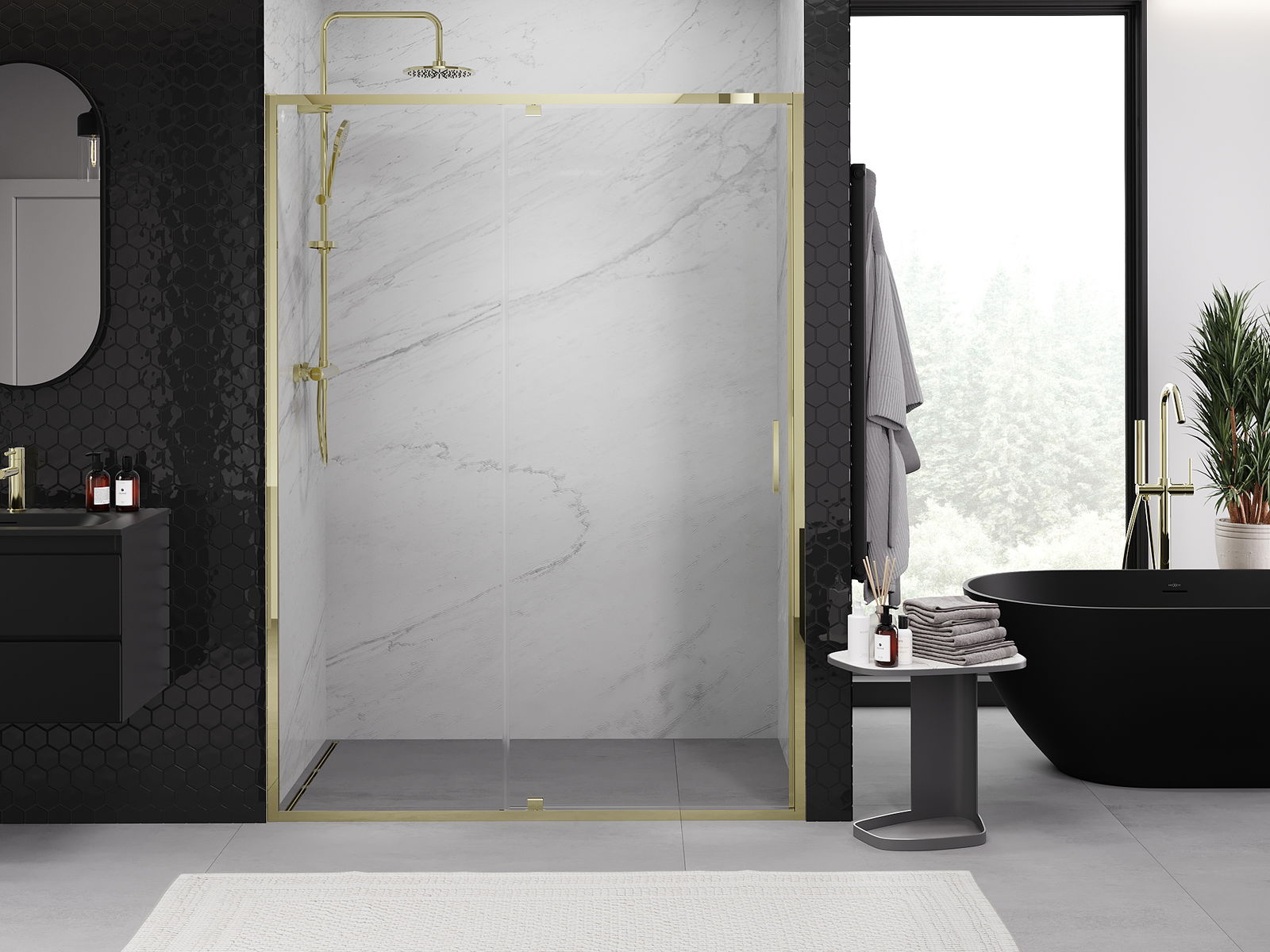 A handy and comfortable handle made from durable and resistant metal. Its trendy shape combined with a finish matched to the colour of the profiles gives the whole a modern and stylish look, highlighting the aesthetics of every bathroom.