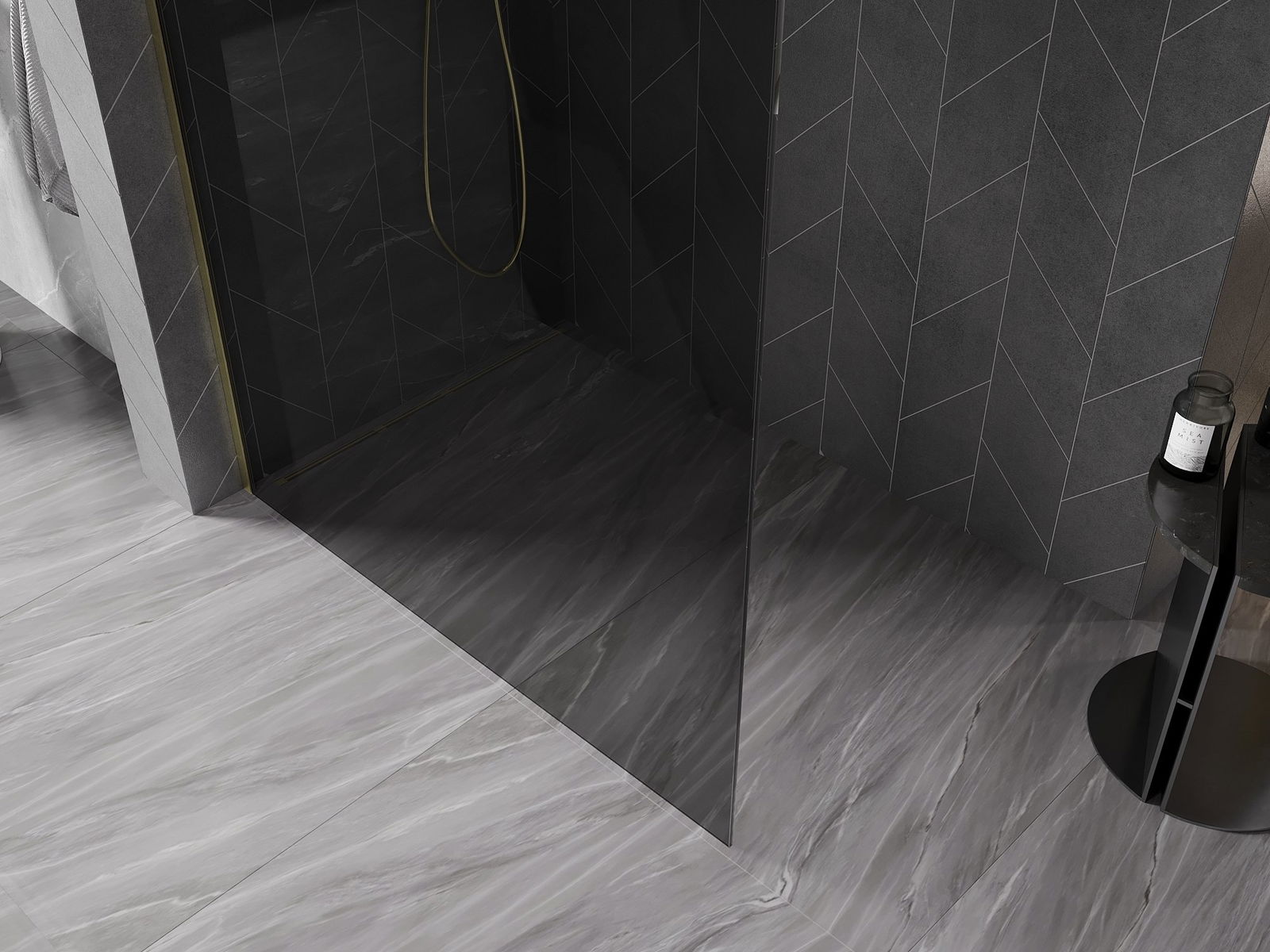 Mexen Kioto-X Walk-in Shower Screen 50 x 200 cm, Graphite 10 mm, Brushed Gold - 800-050-101-55-40-X