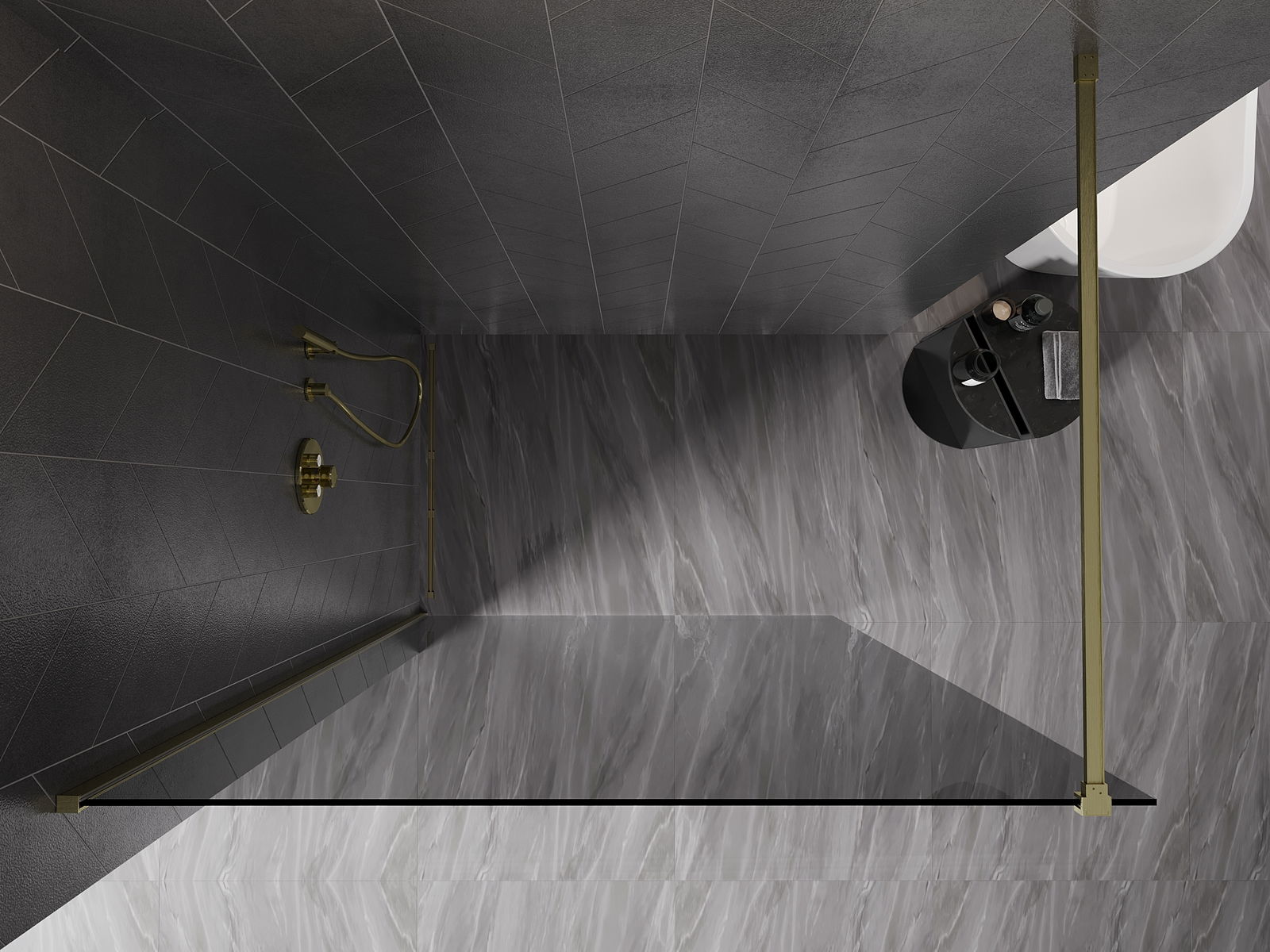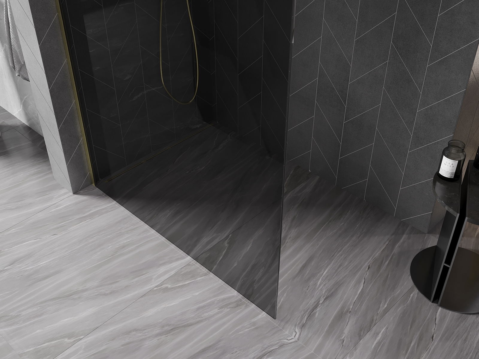 Mexen Kioto-X Walk-in Shower Wall 90 x 200 cm, Graphite 10 mm, Brushed Gold - 800-090-101-55-40-X