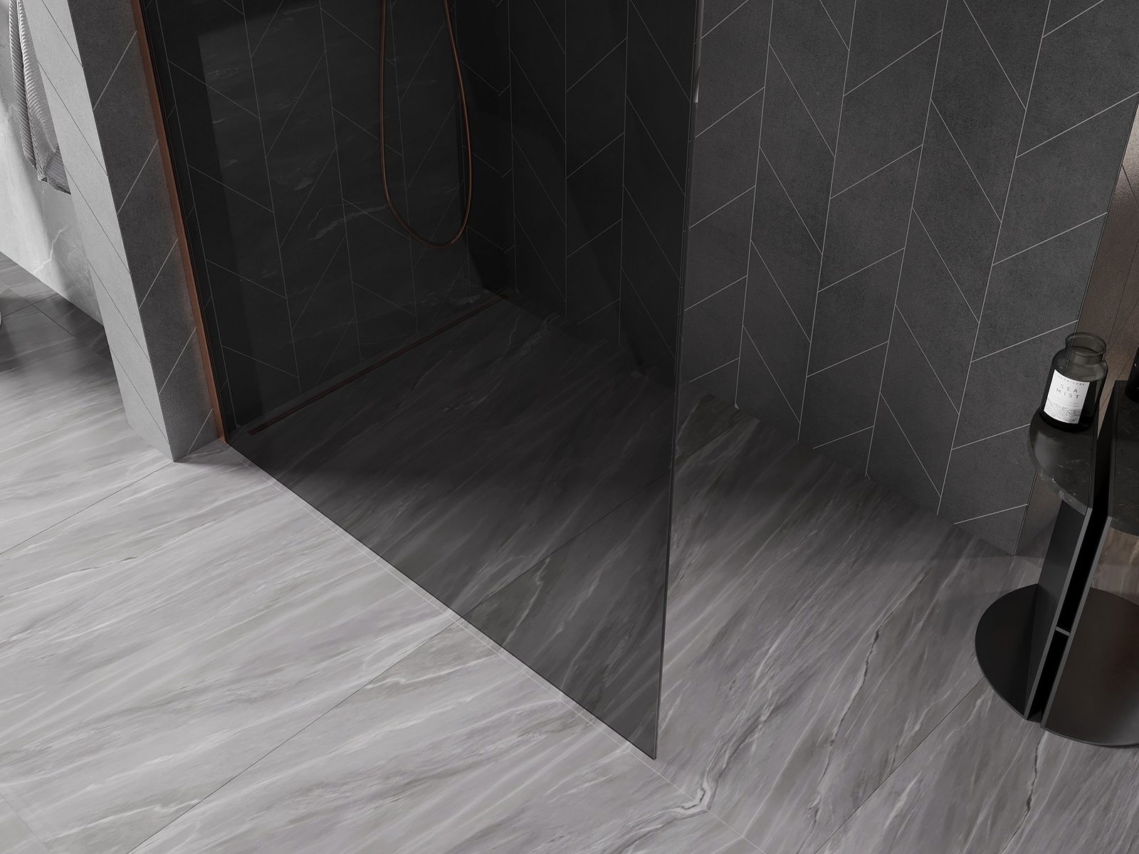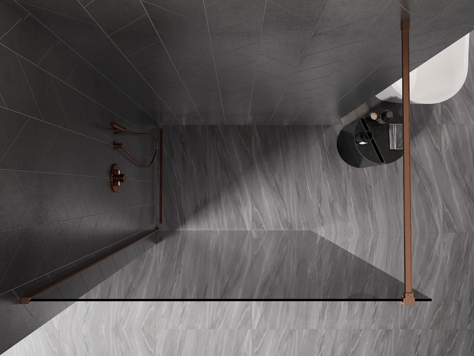 Mexen Kioto-X Walk-in Shower Wall 120 x 200 cm, Graphite 10 mm, Brushed Copper - 800-120-101-65-40-X