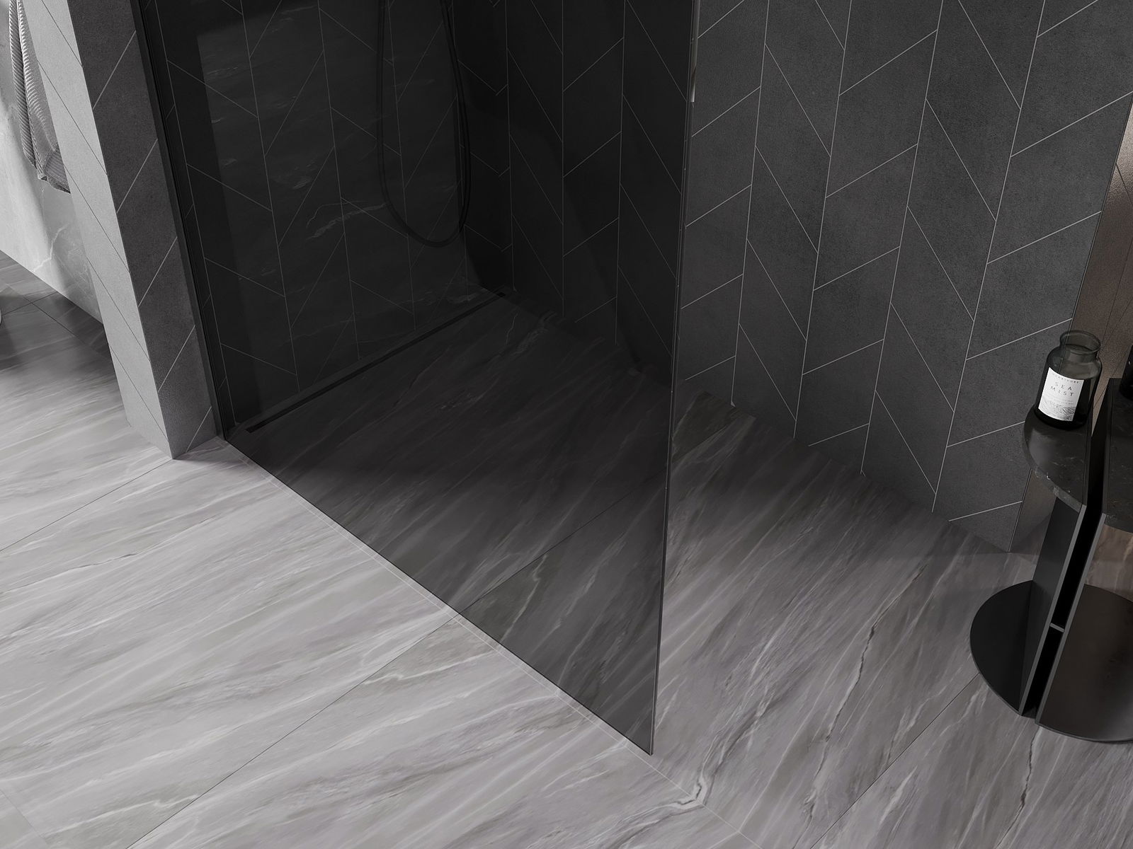 Mexen Kioto-X Walk-in Shower Wall 80 x 200 cm, Graphite 10 mm, Brushed Gun Gray - 800-080-101-66-40-X