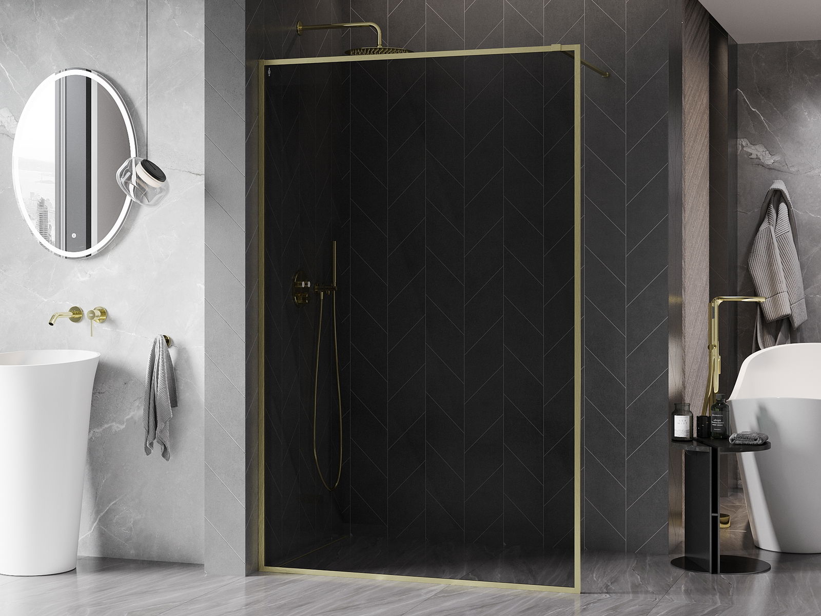 Mexen Kioto-XF Walk-in Shower Screen with Frame 110 x 202 cm, Graphite 10 mm, Brushed Gold - 800-110-104-55-40-X