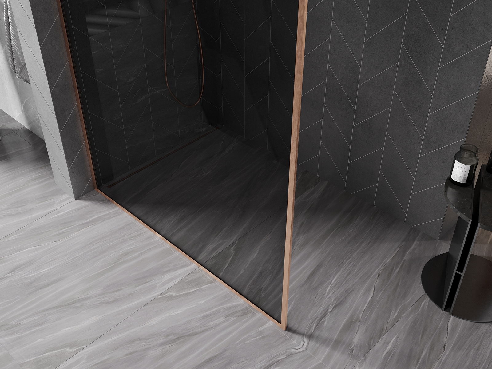 Mexen Kioto-XF Walk-in Shower Screen with Frame 150 x 202 cm, Graphite 10 mm, Brushed Copper - 800-150-104-65-40-X