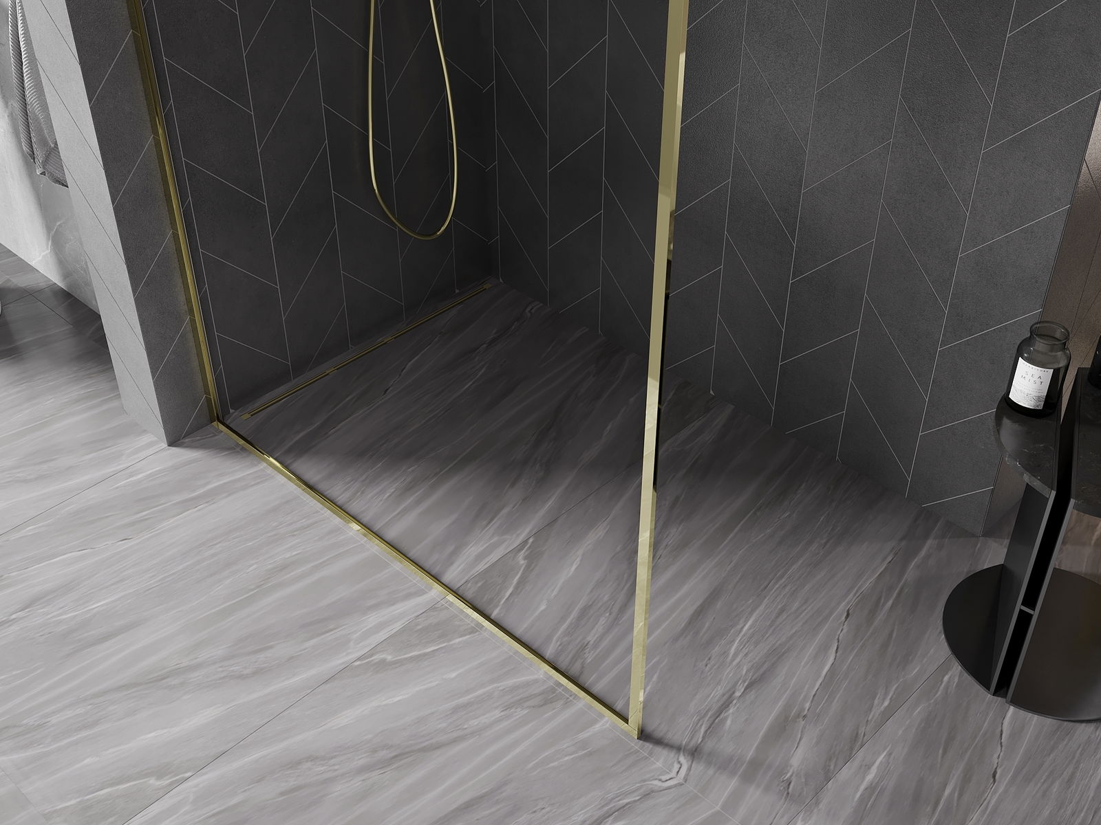 Mexen Kioto-XF L walk-in shower wall with frame 80 x 202 cm, transparent 10 mm, gold - 800-080-174-50-00-XF